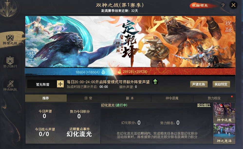 11月22日,《天下3》首个转生服【定乾坤】盛大开服,一时间风云激荡,天下时局乾坤未定! 据官方透露,截止至22日晚19点,已有超过8万名少侠直升79级,即刻投入战场,同时超6万件外观而通过斗转星移计划转移至新服,与少侠一同征战! 为助力少侠们更快、更好地成长,这份新服攻略必不可少!从成长好礼、斗转星移计划、阵营玩法等方面,教会少侠们如何落地新服~话不多说,下面一起来看看这篇“开服指南”吧! 开服直升79级还送装备,成长好礼一应俱全! 少侠们选定门派,并完成取名后点击创角按钮,会马上弹出成长助力的提示框,如果点击立即领取,那么创号后,只要少侠满足【SVIP≥1】的条件,角色就会升至79级,并获得对应门派的成长礼包。 这一成长礼包中,不仅有忠心/达途防具、武器等各种装备一应俱全,帮助少侠们快速武装自己,还有大量技能点赠予,让大家快速提升技能等级。更有开启神石·天下,一键使用后地图神石全开,助你快速传送至大荒各处,奔赴战场! 直升至79级后,少侠们别忘了点击游戏界面右上角【更多-新手福利-等级福利】,一键领取页面中的全部免费礼包哦! 免费礼包内含饷银、绑定金、盈福经验丹、蕴技丹、冰皮月饼等各种成长必备道具。当然咯,别忘了还有达到等级封印后可以领取的饷银锦囊哦~ 除了上述的这些福利,少侠们还可以在界面右上角的【成长之路】中,根据各任务的完成度领取到不同的奖励,相信有了它们的助力,大家能在新服更快地成长! 外观无缝落地新服,斗转星移为你盘活老号 此前让许多少侠既好奇又期待的“老号转生”斗转星移计划,也随着【定乾坤】的开服同步开启。如今,少侠们可以通过界面右上角“斗转星移”按钮进入界面,并实现外观转移,无缝落地新服的操作。 只需满足SVIP≥1的条件,少侠就能享受这个功能啦~最多只需满足SVIP≥6,少侠们就能将三个角色上的外观转移至本服当前的角色中。要注意的是,转移后原来号上的外观会被删除,且会为少侠当前转入外观的角色,增加一定的禁交易时长,在进行操作时要记得看清楚啦! 同时,大家最关注的数值转移功能也将于12月20日正式开启,有需要的少侠,不妨在功能开启后仔细浏览一番,进行转移操作~ 双神领衔,群雄汇聚,首个阵营特色玩法燃战大荒! 新服【定乾坤】最大的特色之一,自然是以阵营为基础的PVP玩法。 少侠们可以点击界面右上角的【双神之战】就能看到由火神祝融和水神共工领衔的两大阵营,少侠可以自行选择加入其中一方。 阵营之战 在【阵营之战】的页面中,少侠可以随时浏览当前两个阵营的比拼情况。如果少侠已加入了其中一方阵营,这里还能显示少侠当日获取的声望明细,这样一来,少侠就能做到心中有数。 此外,该页面还能快速指引大家,完成不同的阵营任务,获取声望,增加势力积分,让阵营持续成长壮大! 获得的阵营声望,可以在阵营商店内兑换各类道具,包括时装、饰件、坐骑等外观道具,也有天璇、雷钻、灵兽经验丹、大学等,涵盖不同培养系统的实用道具~ 势力排行 在这个页面中,少侠们可以直截了当地看到双方阵营中的势力按照贡献量,从高到低依次排布。 势力排行奖励 每周一0点,根据本势力在其阵营内的本周积分排名情况,如跻身前30名,就能领到丰富的奖励供势力主分配给各位成员,包括【封】逆天玉/【禁】神来之笔·陆(二选一)、红钻、五帝本纪·初、军饷券、【封】昊天玉等! 领先阵营中排名前10的势力,所得奖励优于落后势力中同样排名的势力,而在11-30名中,则正好相反。这也鼓励少侠们无论是为了阵营和势力集体的利益,还是个人的成长,都要全力以赴! 势力积分达标奖励 除了排名奖励以外,当少侠们所处的势力达到指定的势力积分后,每个势力成员也能获得达标奖励。 个人奖励 为了鼓励各位少侠奋发图强,开发组还准备了个人参与奖励,该奖励将会在赛季结束时,根据双方阵营的总积分情况进行发放,让大家的每一分努力都得到认可~ 神兵秘技 这一页中记载的,是少侠们在不同战斗场合下,可能接触到、使用到的各类秘技,其中,通过参与神令退魔的活动,有机会获得举世无双的神兵秘技,可以变身为刑天、山辉、筑风,扭转战局。 使用【神兵天降·刑天】可以获得“刑天庇佑”,范围内友方物防和法防都会得到提升,而“震天一击”能降低敌方物攻、法攻; 如果拥有【神兵天降·山辉】,同样能搅动战场风云,“山辉庇佑”让范围内的友方有效避免被一击必杀,又以“风卷残云”提升范围内敌方的蓝耗,造成牵制; 若手握【神兵天降·筑风】,那不仅能提升范围内友方少侠的回避能力,还能以“万箭齐发”降低敌方少侠的会心~ 除了这些极为强悍的神兵秘技,还有能从日常活动中获得的四种不同的大荒秘技。如果少侠们时常前往太古铜门参与战斗,就会发现这些秘技并不陌生,因为大家曾在太古铜门内以“金符”的形式接触过它们。 不过这一次,这些秘技的使用场合,不再是太古铜门的PVE环境,而是每周一的流光梦境。 【扶摇直上曲】技如其名,让少侠们能在一定时间内,获得自由飞行的能力,少侠们不妨展翅起飞,利用高空的地势之便,对敌人来一次出其不意的袭击吧~ 【大步而行】不论你是法系职业,还是负责治疗的奶妈,在秘技有效期内,你的随意移动都不会打断施法,读条从此不再是牵制! 【森罗之护】当少侠受到过量的治疗效果时,溢