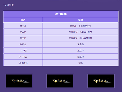 《问道》联运点卡大服“盖世封神”已开服,大道之行争雄起,谁立巅峰称至尊,冲榜封神活动限时进行中,道友快来冲顶封神榜单,赢取限定称号!《问道》时间版特色系统玩法、“梦回殷商”全新副本道友快来体验! 封神冲榜活动时间截止至2024年1月12日,领奖时间为2024年1月13日至1月19日。玩家在游戏内界面右上角小图标看到冲榜页签,活动页内有冲榜大赛榜单详情,各榜单均为单人冲刺,道友快来争取丰厚的排名奖励吧。属性榜单有道行、防御、物伤、法伤、速度榜单,挑战榜单有精英推图榜、妖皇首杀、神魔首杀、七星首杀榜单。各榜单根据排名名次,其奖励不同,稀有道具紫皇晶、紫晶,以及不世道尊、无冕道王、非凡道君、一骑绝尘、摧枯拉朽等限定称号等你来拿! 新服开启“十元一抽”活动,活动时间截止至11月30日。八阶御灵坐骑吉祥蛙、二/三天技句芒、二/三天技疆良、二/三天技乖乖狗等珍贵宠物等你来拿!还有机会获得游戏时间点卡(1200点)、无忧套餐卡、紫气鸿蒙卡等超值道具豪礼。只要在活动期间内,每充值10元(≥10元)光宇币并兑换成问道元宝即可获得一次抽奖机会。单次充值满100元,可获得一次大额抽奖机会!前往天墉城“南极仙翁”处,可直接进行奖品的抽取、领取。 新服专属“养精蓄锐”活动限时开启,精气翻倍领取,活动时间截止至12月23日,让道友在中洲探索更多奖励!点卡计费,无商城真回合,《问道》联运点卡大服“盖世封神”等道友集合! |