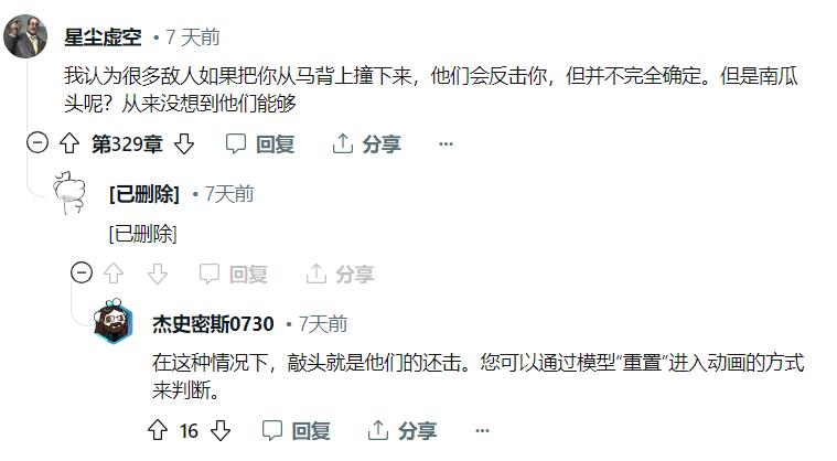 魂游名作《艾尔登法环》自发售以来,斩获了2千万份销量,自然也有着无数忠实玩家。近日有一位自称游戏时间超过1000小时的《艾尔登法环》玩家,在游戏里发现了发狂南瓜头士兵的特殊攻击连段。 名为“MidnightLess882”的该玩家,在国外论坛Reddit上分享了一段视频。 从视频中可以看见他所操作的角色在骑马状态下从侧后方攻击发狂南瓜头士兵后,“南瓜头”发动了反击将玩家挑落下马。随后“南瓜头”转过身来对着玩家角色使出了“头槌二连”,迅速结果了玩家角色的性命。 “MidnightLess882”的遭遇在许多玩家看来并不常见,大多数玩家从未见过这种攻击组合,有玩家分析这种“头槌二连”可能会特定出现在玩家被从马上击落的情况下。 |