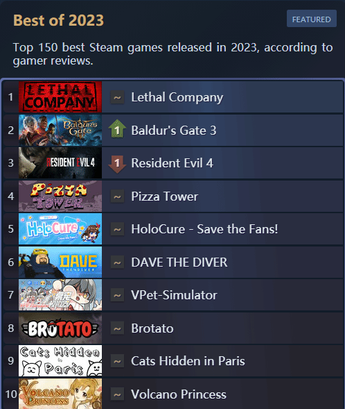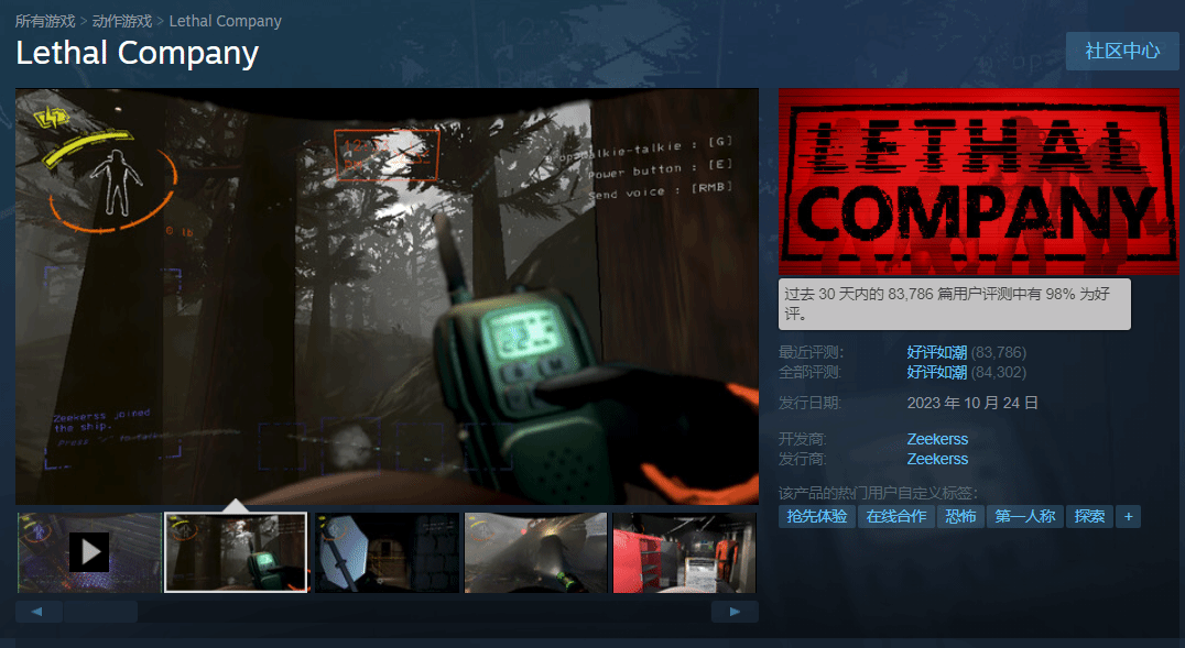 TGA“玩家之声”奖项于今日开启了投票,拉瑞安的CRPG游戏《博德之门3》在首日拔得头筹,超越《王国之泪》遥遥领先。这款游戏此前就曾凭借极佳的口碑,斩获过M站评分最高游戏头衔。 但在今日《博德之门3》却输了,原本在Steam好评率榜单上高居前二的它,被一款名为《Lethal Company》(致命公司)的游戏所击败。当下,《Lethal Company》的好评率高达98%,是今年Steam口碑最好的游戏。评测数量也达到了8w+,绝非那种小众游戏。 这时候可能就有人要问了:《Lethal Company》究竟是何方神圣? 《Lethal Company》是一款多人联机游戏,融合了太空探索及恐怖元素。玩家们可以组队进行体验,每局游戏在地图中都会出现随机的怪物。看起来《Lethal Company》很像之前的《恐鬼症》,但玩法内容都更加丰富。 《Lethal Company》最早于10月23日开启了抢先体验,并在外网获得主播们的青睐。跟《太空狼人杀》、《极地狼人杀》一样,当玩家开始互动后,其中的乐趣就会“超级加倍”。而以主播为传播媒介,更多的玩家成为了“自来水”纷纷支持起了这款游戏。 严格来说《Lethal Company》是PVE的玩法,玩家主要得面对变异昆虫、大型蠕虫、巨型犬、诡异模型以及外部环境的影响。可实际情况却并非如此,四个人八个心眼子、被怪追的时候遇到队友关门、走后面被偷了却默不作声......没有困难大伙都能创造困难。 社交性是《Lethal Company》能火的原因之一,随机的地图和怪物也总能为玩家带来新惊喜。对环境气氛的渲染,使得大家能够切身体会到氛围感,这些都是本作成功的地方。 在上周的Steam周销榜上,已经不再是小众游戏的《Lethal Company》,一举冲上了周销榜的第三位,证明了自己的实力。不过因为上线时间太短,并且还不是正式版,所以在本届TGA上并未能看到这款作品的提名。 《Lethal Company》至今并未推出汉化版,但并不妨碍国内玩家入手。许多人都对这款游戏赞赏有加,认为它是近期“最好玩的联机游戏”。而作为一款小众游戏,《Lethal Company》的Steam在线人数在上周也终于突破了10万。 倘若开发商Zeekerss能够尽快上线中文版,相信《Lethal Company》的热度还能更上一层楼。曾为国内主播出过专属皮肤的《鹅鸭杀》,就是Zeekerss的学习对象——中国玩家向来不会辜负重视他们的厂商。 那么大家觉得《Lethal Company》未来还能更上一层楼吗? |