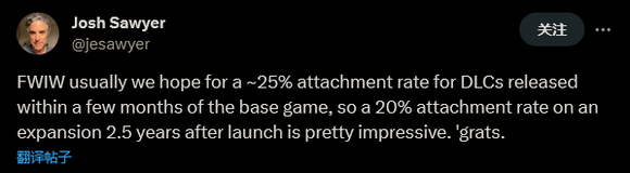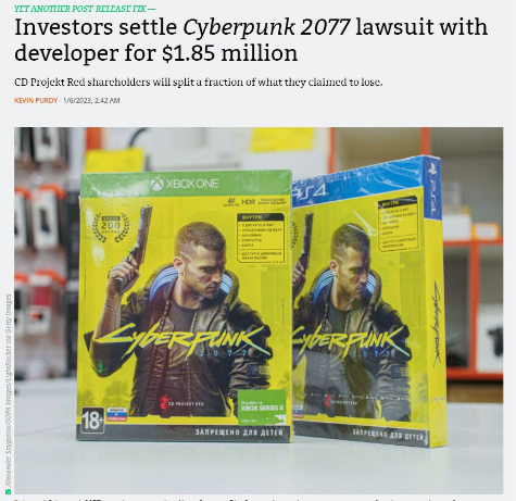在CDPR最近公布的2023年第三赛季财报中,首席财务官 Piotr Nielubowicz透露《赛博朋克2077:往日之影》的销量达到了430w份。这款发布于9月26日的游戏,在短短两个月中就取得了这样的成就令人为之侧目。 430w份的销量数据,意味着有20%拥有PC或次世代主机的《赛博朋克2077》的玩家,购买了这部付费资料片,而这种情况放在三年前是完全无法想象的。 《赛博朋克2077》在发布之初因为优化问题引发了玩家们的强烈不满,层出不穷的BUG困扰着许多玩家。主机玩家一度进不了游戏,不少对本作进行了预购的人,更是发誓再也不相信任何厂商。作为一款体量庞大的3A游戏,诸多投资者甚至都跳反了。 在游戏上线几周后,《赛博朋克2077》的投资者对CDPR进行了集体诉讼。双方的官司持续了两三年,直到今年1月份才算达成了和解。为了补偿投资者,CDPR将向原告支付185万美元。其中包含和解管理费用、税金、律师费和成本,以及2020年1月——12月买的股票。 通过后续的更新,《赛博朋克2077》的口碑渐渐变好,但本质上其实只是将大家最初想象中游戏该有的样子给重现出来罢了。真正让玩家感到惊艳的,还是《赛博朋克:往日之影》所展现出的内容。 这个DLC的体量跟游戏本体自然无法同日而语,但是在游戏细节、内核、任务关卡设计......全然没有敷衍的姿态。正如上面咱们所提到的,《赛博朋克2077:往日之影》DLC的玩家依存率达到了20%,对于这点黑曜石工作室的设计总监Josh Sawyer 就表示惊叹。 要知道,通常情况下一款游戏在发布几个月后推出DLC,玩家的依存率通常只有25%。而《赛博朋克2077》发布距今已经过去数年,却依然可以取得这样的成绩本身就很能说明问题。连带着,这也让《赛博朋克2077》的风评较之以往有了显著提升。 Josh Sawyer 本人对《赛博朋克2077:往日之影》是切身体会被通关了的,不过他选择的是“权杖国王”这个在大部分人看来都算不上太好的结局。当然,CDPR设置不同的结局选择也是为了给予玩家不同的游戏体验。 由于在玩家们心中的高评价,《赛博朋克2077:往日之影》还入围了TGA 2023 玩家之声奖项。现阶段,玩家投票正在持续当中。 而关于夜之城的故事,现今仍有发掘空间。只是CDPR正在着手于《巫师4》和《赛博朋克2077》续作的开发,因此未来看到更多相关DLC的可能性,会比玩家预想中要低。 不知道在大家眼中,《赛博朋克2077:往日之影》是一款什么水准的游戏呢? |