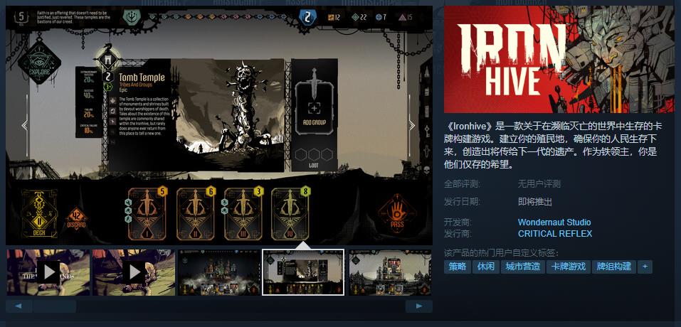 卡牌构建游戏《IRONHIVE》Steam页面 支持简繁体中文