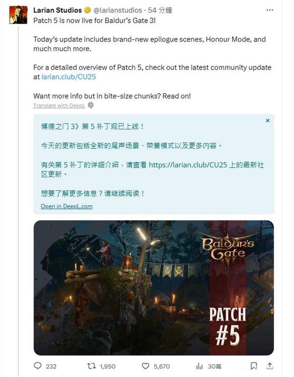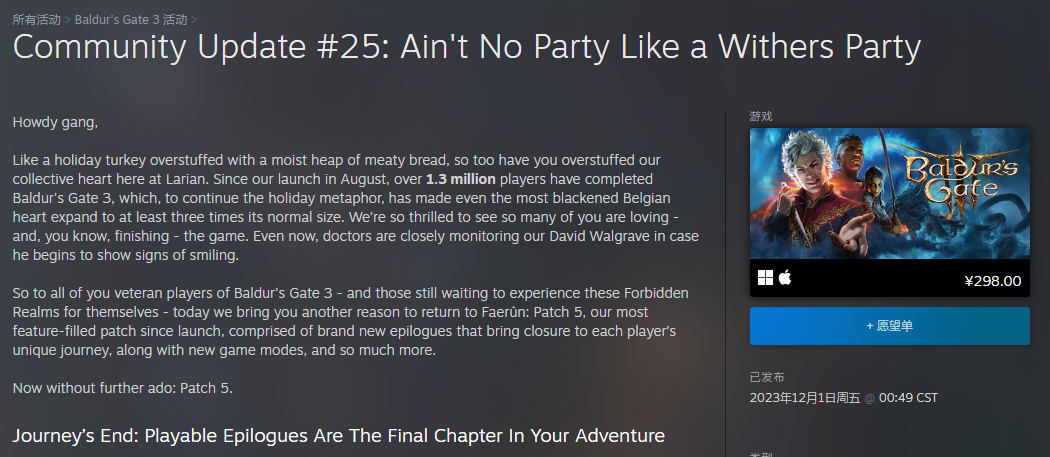 年末还在卷同行 《博德之门3》更新30G DLC的量都加进去了