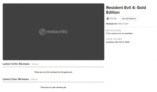 根据Metacritic的数据显示,卡普空有可能会推出《生化危机4:重制版》黄金版,Metacritic网站上最近列出了该游戏的页面,显示游戏将于2024年2月9日发售,登陆PS5和PS4,不过卡普空目前还未正式宣布这个消息。