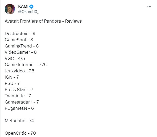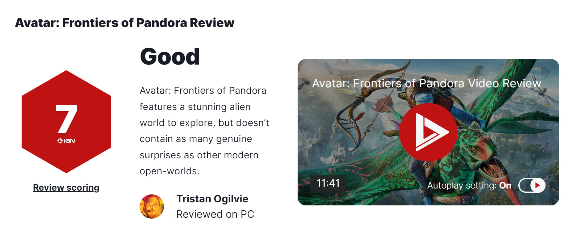 《阿凡达:潘多拉边境》媒体评分解禁 IGN 7分