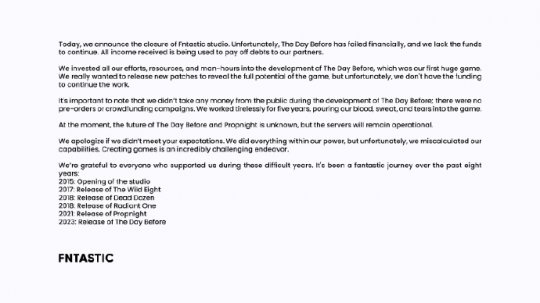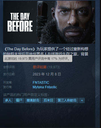 今年的游戏市场上涌现出了许多佳作,搁年初,恐怕没人会觉得一款CRPG游戏能击败《塞尔达传说:王国之泪》拿下TGA年度最佳游戏大奖。然而游戏圈,好作品才是罕见的。这不,才刚进入12月,一款令IGN破防的游戏就出现了。 由Mytona发行、Fntastic开发的开放世界多人在线游戏,在12月8日上架Steam,开启了抢先测试版。然而在这短短四天中,这款作品的好评率就从37%掉到了17%,并顺势解锁了“差评如潮”的成就。 过去因为爱打8分,屡屡被玩家们调侃“谁也不得罪”的IGN,体验过游戏后这次也是动了真火,打出1分的同时还评价:“这是我玩过的最烂的游戏之一,我都不敢继续在电脑上运行它,你没玩算你走运。” 在经历了Steam玩家差评、业内媒体的看衰,《浩劫前夕》的未来已经不容乐观了。Steam差评榜上这款游戏位列年度前三,仅次于《三国杀》和《守望先锋归来》。如果这种情况持续下去,它甚至有望挑战榜首位置。 《浩劫前夕》作为一款多人在线游戏,并未能保证服务器的稳定性。除了新游戏身上常见的优化和BUG问题,让玩家感到失望的另一大因素就是缩水严重。 这款游戏原定于去年6月发售,但官方以“升级引擎”为由进行了延期。几经修补《浩劫前夕》终于上线了,可玩家们却并未看到预期中的内容。上个月官方还曾发布过预告片,但实际成品却“货不对板”。 当下,开发商Fntastic已经宣布破产。并允许玩家无条件退款,不受游戏时长限制。游戏的服务器虽然仍会保留,但大伙将看不到更新。 为数不多的正面消息是,Fntastic在过去五年的游戏开发过程中,并没有从玩家那获取过资金。《浩劫前夕》没有进行过预售活动,也没有开放过众筹通道,因此这里面不存在“圈钱跑路”的情况。 当然,玩家们对这款游戏也没有产生太多留恋。在官方的退款通知发布前,其实就有9万多名玩家进行了退款,退款率高达46%。而事情到了这一步,不论后续如何调整策略结局也不会产生太大变化。现阶段Steam平台,甚至已经关闭了对这款游戏的购买渠道。 发布后口碑不佳的游戏常有,但像《浩劫前夕》这样上线四天就让自家工作室破产的作品却不常有。相信在未来的很长一段时间里,发生在Fntastic身上的故事都将提醒同行们,要拿出更多的诚意来对待玩家。 那么大伙对此又有何评价呢? |