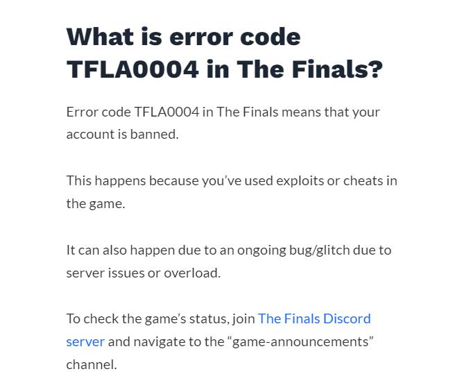 《The Finals》部分玩家遭遇“TFLA0004”代码错误 导致账号被误封