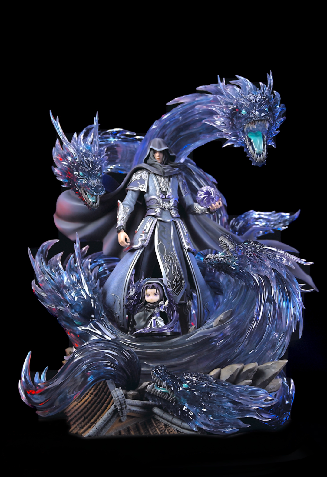 作为《天下》IP中备受欢迎的人气NPC之一玉玑子,一直以来都是不少少侠心目中的“男神”,大家都亲切地唤他为“鸡哥”。在他的周边手办——天下 | IKS铁风筝工作室 “玉玑子-幻龙蜃影” 1:4正版授权雕像即将上线的消息公布后,便引起了许多少侠的关注,纷纷呼唤开发组,想要了解更多相关信息。 昨日,天下3官方发布了该玉玑子 1/4 雕像的爆料视频,其中诸多亮点细节,引来不少少侠的关注与热议。事不宜迟,点击下方视频,一起欣赏玉玑子的酷炫登场吧~ 同时,开发组为了回馈大家对于鸡哥的支持,特地在天下3官方微博处举办了转抽活动,少侠转发微博即有机会获得【玉玑子披风或玉玑子流沙立牌】! 他,以凡人之躯,行逆天弑神之事 从东海、西海等主神与幽都的纷争纠葛,到水、火双神共斗,神、魔的一举一动都能撼动红尘凡间,与诸神相比,凡人的力量似乎是如此得微不足道。而在这被诸神所掌控的山海世界中,有那么一个人,他以凡人之躯,通过数载努力登上权力之巅,逆天改命,弑神魔毁天地!他就是在大荒最具争议性的存在——玉玑子。 有人说,他是大奸大恶的叛徒,也有人说,他是改变历史的一代枭雄。身为皇朝国师,他却投奔幽都,献祭无数鲜活生命;却也不惜耗费毕生心血,只为以凡人之躯开创一个崭新的世界。正因其复杂的性格与高冷的形象,他成为了大荒中最受欢迎的NPC之一,并被大家亲切地称为“鸡哥”、“冷面男神”。 一千个人心中,自有一千个玉玑子。但不可否认的是其极具传奇色彩的经历,令无数人感慨万千。试问当年,多少少侠曾为那段故园情,感动得热泪盈眶?又有多少少侠钦佩于他为了目标而一往无前的强大毅力? 历时良久,他终于跨越山海,腾龙登场 这样一位经典人物,即将跨越山海,打破次元壁垒,以雕像的形式来到少侠的身边!在设计稿上,从男神玉玑子的生动的造型,精巧的场景刻画,到龙体渐变的上色,足以看出满满的匠心。 这一次,开发组将经典CG【玄玑变】中,枭雄玉玑子的名场面“大破西陵城”作为设计灵感,选取他身着玄衣斗篷、黑发掩面的经典形象为设计中心,刻画出他以七龙幻化之术奇袭西陵城时的霸气身姿。 底座设计为一片断壁残垣,玉玑子站于废墟之中,他五指微屈,掌心上正积蓄着无穷的力量,可翻手为云又能覆手为雨,尽显霸气威武。群龙盘旋于其身后,正积蓄着无穷的力量,好似顷刻间便能吞噬天地! 透明材质的龙体在灯光的照耀下更显生动,猛龙皆怒目而视,瞳孔犀利无比,靛蓝点睛突出神气,以凶光震慑敌方,血口大张,露出一口尖利獠牙,无不狰狞可怖。 玄色斗篷迎风而飘,帽沿之下露出玉玑子如星眉目,他薄唇微抿,目光坚定地眺视着远方,不为外物所动摇。 玄紫色的衣袍以烫银滚边为装饰,在不同光线的照耀下,银饰紫边铠甲熠熠生光,祥云暗纹镌刻其上,低调而不失奢华。 无论是衣饰上精细雕刻的勾线,还是斗篷上完美展现的褶皱,每一个细节都经过精心设计和制作。开发组致力于还原他那野心勃勃、霸气又矜贵的形象,希望能够通过这一尊雕像完美呈现出他的风采。 作为本次爆料的彩蛋,开发组还为大家展示了“大鸡抱小鸡”的温馨画面。不知少侠是更喜欢冷峻酷帅的鸡哥,还是超萌可爱的小玉玑子呢? 以上便是今日关于玉玑子 1/4 雕像的全部爆料。据悉,该匠心之作将作为本届《天下3》年度评选的荣誉大奖,以犒赏诸位少侠!少侠可前往更新公告查看完整活动规则,了解更多奖励详情~此外,关于雕像的更多发售信息,大家可继续关注官方公众号后续资讯,敬请期待哦! |