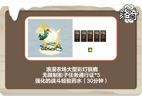 圣诞节来临,在这个闪烁着节日氛围的日子里,米莱西安怎么能没有圣诞礼物呢?娜儿为心爱的米莱西安准备了丰富的圣诞礼物,以表达对米莱西安的深深情谊。 【圣诞礼物】 连续登录15天游戏 浪漫农场圣诞屋 666666(金属固染) 233233(金属固染) 累积在线40个小时 浪漫农场大型彩灯驯鹿 无限制影子任务通行证*5 强化的战斗经验药水(30分钟) 累积收集66个粗线团 浪漫农场圣诞拱门 羊驼圣诞服装箱 黄金营养剂 累积收集66个细线团 浪漫农场小型亮晶晶的树 圣诞染色药水套装 战斗经验药水(2小时) 累积收集66个高级木柴 浪漫农场圣诞蜡烛 移动速度40%增加药水 (30分) 无限制地下城通行证 最终圣诞礼物箱 圣诞雪花树 浪漫农场圣诞节派对 冬季圣诞服饰箱子(男式) 冬季圣诞服饰箱子(女式) 【活动参与方式】 活动对象: 10000级以上的米莱西安(最高累积等级角色) 活动详情: 1.页面上有几个不同的礼物箱,每个礼物箱需要完成不同的任务后才能领取里面的奖励 2.每个礼物箱每个账号只能领取1次。 3.礼物箱全部开启后可以额外获得一份大礼物。 活动任务: 1.累积登录15天游戏即可开启1个指定的礼物箱2.累积在线40个小时可开启1个指定的礼物箱3.累积收集66个高级木柴可开启1个指定礼物箱4.累积收集66个粗线团可开启1个指定礼物箱5.累积收集66个细线团可开启1个指定礼物箱*5个礼物箱全部开启后可获得1个额外的大礼物箱。 *获得道具需存放在最高累积等级角色物品栏内或宠物物品栏。 *活动道具不可存放于粗线团包或细线团包,否则将不会被统计在内。 *活动期间内,请尽量不要使用活动所需道具,以免数据异常。 小贴士: 1.活动数据在次日的11:00~12:00页面维护后导入,数据维护时无法领取奖励。 2.为避免数据异常,还请每天23:59后重新登录游戏。 3.虚拟道具奖励有效期至2023年2月1日00:00,还请在有效期内激活使用。 4.为了活动公平性,会对使用大量小号参与活动的工作室,进行处罚。 娜儿准备的丰厚圣诞礼物,等你来领取喔~每天完成一点任务,轻轻松松就获得丰厚的礼物了~ |