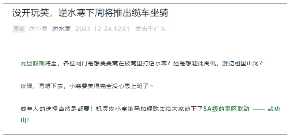 自古以来的各种神话传说中,都不乏“飞天”的题材,这些故事代表了国人对辽阔空域美好的向往和想象。而御剑飞行,更是刻在每个武侠迷DNA中的终极梦想。 近日,网易旗下古风端游《逆水寒》宣布,在1月18日上线的2.0版本中,人人都能免费领取一把飞剑养成,游戏也将迎来“全民御剑飞仙”的时代。 就在整个游戏圈被这颗重磅炸弹引爆的时候,整活不能停的《逆水寒》又站出来表示:为了在2.0版本登陆前,让大家早点熟悉飞天体验,自己将在线下把玩家送上千米高空,感受一把极限飞跃的刺激。 看完官方的介绍,原来是一向最会联动的《逆水寒》,把搞事情的目光投向了江西武功山景区——项目组承包了整片武功山,作为游戏的首个线下地图。 其中最令人惊喜的就是,逆水寒在景区推出了江湖首款缆车祥瑞坐骑供玩家乘坐。师兄、师姐、月牙儿等玩家熟悉的江湖NPC都会从游戏来到大家身边,陪伴玩家体验沉浸式“上天”的旅程。 看到这样暖心的安排,许多玩家泪目发言:游戏世界与我互诉衷肠,现实世界也陪我跋山涉水,真是太好了。 除了让玩家飞起来,再一个就是,《逆水寒》在武功山石鼓寺广场中心设置了花墙打卡点,玩家可以凭借游戏身份领取“登山棍”。无论是徒步登山,还是拍照摆pose,这个道具对于玩家而言都是神器一般的存在,实用性满分。 此外,石鼓寺广场附近还有数百位流派COSER随机出没求偶遇。帅哥美女扎堆,可以说是颜狗盛宴,特别是一众COSER中还包括了首次下山亮相的“女铁衣”流派。届时COSER们会手拿一麻袋周边,一见面就给玩家霸道塞礼物,不难想象到时候现场会有多火热。 形式有趣的联动得到了大批玩家的好评声,许多玩家为这次的武功山景区联动激情打call。有人调侃:直接解决了我的跨年活动纠结症;有的刚看完联动爆料,就飞快下单景区门票;还有的已经计划好约上情缘,一同去武功山面基奔现了。 值得一提的是,从官方透露的消息来看,逆水寒与武功山的联动仅仅是全新线下景区联动系列“处处是江湖”的首站。未来官方还将与国内其他知名的旅游景点合作,通过游戏x文旅观光的跨界模式,让逆水寒玩家线上线下都能感受到武侠江湖的真实痕迹。 面对玩家的热情讨论,逆水寒还特地在评论区邀请玩家提名景区联动的下一站地点。什么游戏中枫语山地图对应的北京香山、聚齐了各路好汉的水泊梁山、五岳独尊的泰山……五花八门的地点让人看得选择困难症在线发作。 不过,被提到最多的,还是游戏中各位逆水寒玩家出生的“自在门老家”——三清山。如果真能联动,估计线下地图也会被打卡的玩家挤爆。 从与各大热门国风影视剧合作,到携手国内知名景区,开启“处处是江湖”的联动企划,不得不说,《逆水寒》融入玩家真实生活,不断更新现实地标的真诚,的确狠狠收割了一波好感。也令玩家更加期待,在后续的跨界联动中,逆水寒还会给大家带来多少惊喜。 |