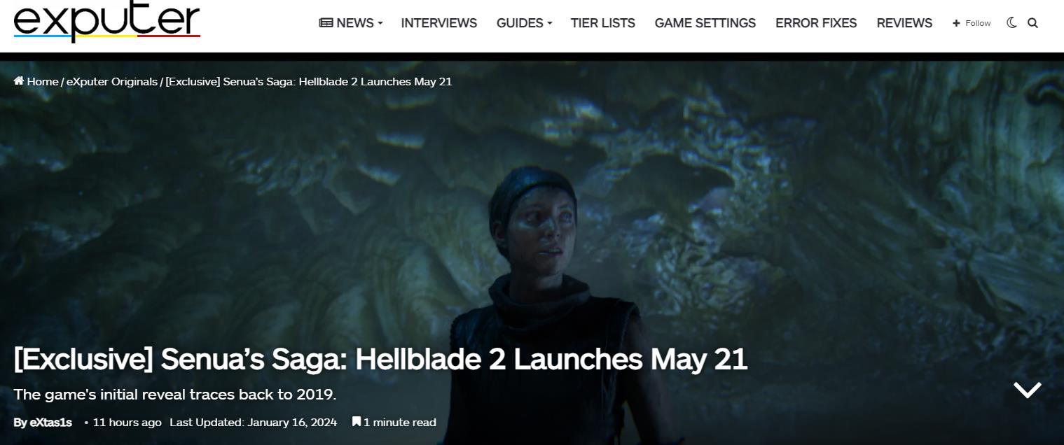 据Exputer今日(1月17日)独家消息,Ninja Theory开发的奇幻RPG游戏《地狱之刃2:塞娜的史诗》发售日泄露,与去年12月泄露消息一致,《地狱之刃2》将于今年5月21日发售,据悉,微软会在1月19日Xbox直面会直播中公布《地狱之刃2》的幕后花絮等内容。