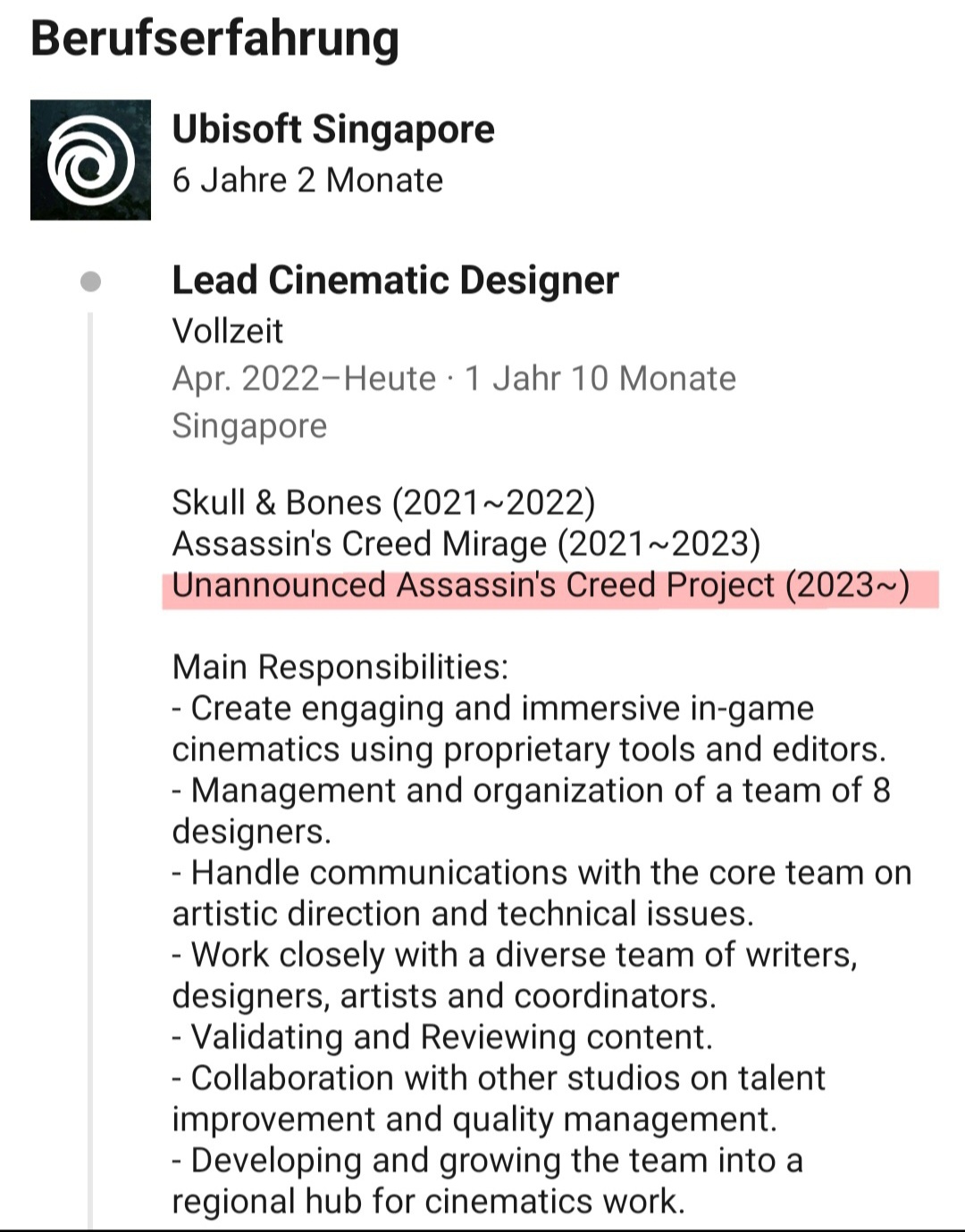 现在这一传闻有了新的证据,根据育碧新加坡首席动画设计师Isaac Tan的领英个人资料页面显示,他自从2023年开始就在开发一个未公布的《刺客信条》项目,这与传闻中《刺客信条:黑旗》重制版的报道相符。Isaac Tan此前曾担任过《碧海黑帆》和《刺客信条:幻景》的首席动画设计师。