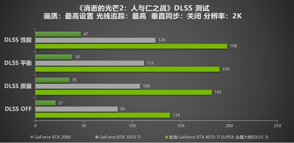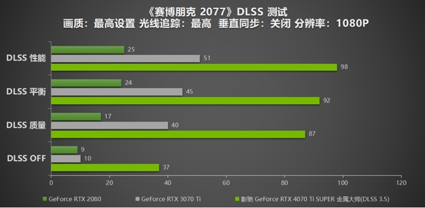 就在今日,GeForce RTX 4070 Ti SUPER也随之正式解禁了!基于Ada Lovelace架构的GeForce RTX 40 SUPER系列显卡,可以说是在PC上体验AI的绝佳选择之一。GeForce RTX 4070 Ti SUPER GPU在游戏、内容创作和日常工作等方面,均能够为用户提供革命性的AI性能提升。此次,影驰也一样是为用户带来了该型号下的三大系列:影驰GeForce RTX 4070 Ti SUPER 星曜/金属大师/大将 ,为玩家们带来十足的战斗力。本次评测选用影驰GeForce RTX 4070 Ti SUPER 金属大师,为用户来带详细的拆解以及各种实测数据对比。接下来看看该卡的实际强悍表现吧! 首先来看一下影驰GeForce RTX 4070 Ti SUPER 金属大师 的规格参数与GeForce RTX 3070 Ti 和GeForce RTX 2080 的对比: 产品开箱 产品拆解 首先进行的部分是影驰GeForce RTX 4070 Ti SUPER 金属大师 内部结构的拆解。 首先介绍的还是GeForce RTX 40 系列一贯的NVIDIA Ada Lovelace 架构核心。通过 TSMC 4N NVIDIA定制工艺,实现高达 2 倍的性能功耗比飞跃。搭载第三代 RT Core 和第四代 Tensor Core。第三代 RT Cores 的有效光线追踪计算能力达到 191 TFLOPS,是上一代产品 2.8 倍。Tensor Cores 的FP8 引擎,具有高达 1.32 petaflops 的张量处理性能,超过上一代的5倍。影驰GeForce RTX 4070 Ti SUPER 金属大师核心处理器型号为AD103-275,拥有8448个CUDA处理器数量。该架构让光线追踪技术的效果达到高达 2 倍的提升。同时也为具有变革性的AI技术垫定了基础,包括帧生成 NVIDIA DLSS 3技术。让用户们在进行游戏时享受到更为精细的游戏画质以及更加流畅稳定的游戏帧率。 影驰GeForce RTX 4070 Ti SUPER 金属大师 拥有16GB GDDR6X 超大显存。显存频率高达 21Gbps,显存位宽 256-bits。让2K游戏性能更加优异,实现流畅运行。对于内容创作者而言,处理高清视频、画面渲染等等方面,体验到优异的处理速度和效果,为用户带来更加出色的使用体验。该卡能够轻松掌控各种复杂和极端的运行加载需求,生产力直线增加。 采用符合ATX3.0 / PCI-E 5.0供电规范 12VHPWR供电接口,与PCB镂空设计,285瓦的超低功耗将性价比直接拉高。搭配8层高规格PCB,紧凑设计更加严谨,让电气性能更上一层。11+2相数字供电的配置更是超越公版的配置,保证影驰GeForce RTX 4070 Ti SUPER金属大师 在满载的情况下,仍然持续稳定又安全的性能输出,使性能持续超强发挥。 影驰GeForce RTX 4070 Ti SUPER金属大师作为经典的无光系列显卡,以宇宙魔方为灵感,设计压铸铝合金一体成型上盖,全覆盖的设计搭配金属材质,再配合上不规则的线条呈现,带来了科幻感和美感的兼备。全金属外壳和背板采用了穿透式散热系统设计,搭配CNC高光亮边、金属拉丝、雾面等多种工艺打造,在辅助散热的同时,保证显卡的质感和美观。挡板、压铸件、背板采用联动设计,不仅进一步加强显卡的防护能力、使其能够进一步保护显卡背面元件防止 PCB 变行;还能辅助散热。尾端散热带有贯穿开孔设计,减少尾部重量的同时给风流提供最优选的散热通道,进一步确保散热。 影驰GeForce RTX 4070 Ti SUPER金属大师采用全新一代寒光星δ(德尔塔)散热系统,配备8*Φ6mm镀镍复合热管,镀镍设计加强了抗氧化能力。配合大面积高效均热板和合金压铸加强件,以及回流焊接工艺和金属外壳,让显卡热量能够进一步下降且得到稳定控制。 影驰GeForce RTX 4070 Ti SUPER金属大师 由3个同样大小的102mm异形风扇组成,采用了二代经改良角度的11叶静霜扇叶,20mm厚度除了增大进风量进一步稳定显卡温度,加强核心动态频率的提升幅度,同时达到了进一步减少噪音的目的。同样支持智能启停。 影驰GeForce RTX 4070 Ti SUPER金属大师 搭配全数字显示接口支持4屏显示,配备升级 HDMI 2.1 接口、支持动态 HDR、支持游戏模式动态刷新率等等。DP1.4a*3 最高可支持 8k@60Hz 超清输出,以满足绝大部分玩家以及设计工作者们的需求! 影驰 XTRME TUNER 新世代?新魔盘支持OC、灯效调整,支持OC Scanner等功能。让玩家实现超频,温度监控等等,还有更多新功能等待发掘,尽请期待! 性能测试 参数平台 GPU-Z 通过GPU-Z可以得到影驰GeForce RTX 4070 Ti SUPER金属大师 的产品规格和基本参数,其待机温度为38.4°C,功耗为20W。 FurMark 根据FurMark测试中,用户可以看到影驰GeForce RTX 4070 Ti SUPER金属大师 的GPU 功耗为283.2W,温度为62.9℃。全新一代寒光星δ(德尔塔)散热系统,让该卡在性能超强发挥的同时,实现持续稳定的温度控制,即便GPU处于满载功耗的情况下,其温度可以保持在持续稳定的状态。由于满载情况下的所需功耗达到了170.7W,所以建议选择影驰GeForce RTX 4070 Ti SUPER金属大师的用户在搭配电源时,使用功率为750W以上的电源设备。 3DMARK 在3DMark ?TimeSpy DX12 测试中,影驰GeForce RTX 4070 Ti SUPER 金属大师的显卡分数达到了21609分。在3DMark Fire ?Strike DX11测试中,则是为52130的优异成绩。该分数证明了,该卡的性能足以让玩家流畅运行市面上的大多数游戏,实现高刷新率的需求。而对于在意光追游戏的用户而言,3DMark ?Portal Royal光追测试的分数可以表明,影驰GeForce RTX 4070 Ti SUPER 金属大师在运行3A光追游戏大作时的性能体现,可以说是优良,分数达到了13500。 NVIDIA RTX 技术 NVIDIA DLSS 3.5? NVIDIA DLSS 3 由 GeForce RTX 40 系列 GPU 所搭载的全新第四代 Tensor Core 和光流加速器提供动力支持,进行分析连续帧和运动数据,以此生成其他高质量帧。迄今为止,已有超过370款游戏和应用将NVIDIA DLSS作为AI驱动的性能加速器。DLSS 3是该技术的最新版,现已用于超