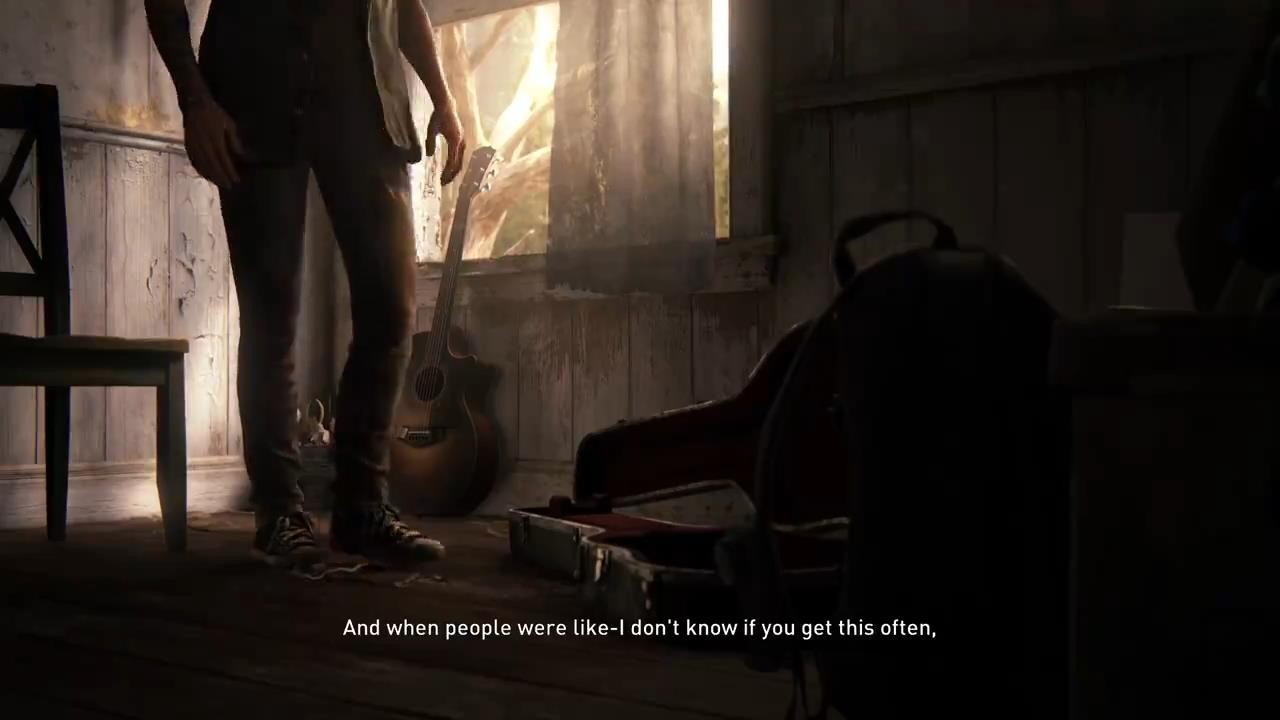 尼尔认为吉他就像是创伤触发器,艾莉需要让其消失然后重新开始。创作团队为此进行了多次讨论,尽管游戏故事非常沉重,但尼尔还是希望结尾充满希望。