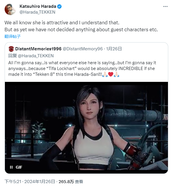 《铁拳》制作人知道粉丝希望将《最终幻想》的蒂法纳入游戏中