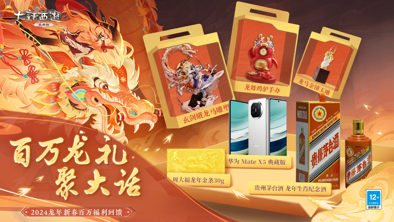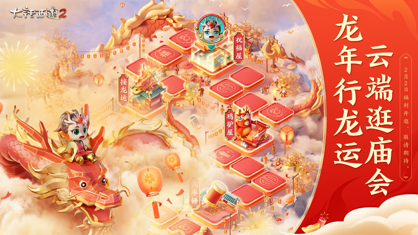 龙腾盛世,福满江湖,三界喜迎新春;长安烟火,随风入怀,情义岁岁年年。 佳节将至,2024龙年春节版本盛大开启!龙年春节系列活动、新春签到活动、龙年贺岁锦绣、龙年长城主题座驾、主题新服龙吟九州、云端长安庙会等内容正在陆续上线中,更有同城聚会“城市接龙计划”火热报名中!海量福利即将上线,点击下方专题,即可了解2024春节福利活动日历及详情: 龙年贺岁品牌片温情上映:“每个人的身边,都有一个龙哥!” 每个有情有义的人,都是“龙哥”。 他急公好义、古道热肠,待人接物总是充满热情,朋友求助向来义不容辞,兄弟有难也及时伸出援手,“爱面子”但更会“过日子”,是家人们心中的“顶梁柱”,也是大家伙信赖的“龙头”…… 无论是生活中还是游戏里,只需一声“龙哥”,总能收获一份安全感。 其实,只需悉心观察,每座城市、每个社群、每个帮派,乃至每个人的身边,或多或少都会有“龙哥”的身影。《大话西游2》龙年贺岁片“每个人身边都有一个龙哥”今日温情上映,愿与所有大话“龙哥”共述江湖情义,共话龙年新春! 龙年春节活动2月2日全服!参与签到送“龙小侠”! 2024春节活动“新春游园会”将于2月2日至2月18日期间开放,此外,在春节当天(2月10日),战胜BOSS将有几率获得可交易一次的珍稀神兽-年!全服限量1只!希望在龙年里可以将年领回家! 2024春节签到活动在1月25日维护后至2月25日期间火热开启,活动期间每日天道酬勤达到30分或前一日酬勤积分达到60分的少侠,即可进行签到,参与签到可获得丰厚经验以及师门贡献!除此之外,还有几率获得“龙小侠”、2024长城资料片新系统培养道具“天赋修炼丹”,还有圣猿摆件、鸡驴全系列手办、龙年“龙舞鸡驴”等福利! 随着春节活动陆续上线,《大话西游2》也即将携手中国文化馆协会,为大家带来国风赋新·匠心话非遗计划·寻龙篇,敬请期待! 贺岁锦绣“龙行九州”及座驾“龙吟山河”闪亮登场! 应龙破渊冲天起,万象归一铸鳞机!2024龙年贺岁锦绣“龙行九州”将在2024年2月4日12:00-2024年2月9日24:00期间,在游戏左上角“贺岁锦绣”中“贺岁时装”分页开启售卖。男装“应鳞”释出霸道龙威,女装“天机”尽显至美龙颜!本次锦绣有三种配色,除原版时装外,这套贺岁锦绣还有“曜”与“墨”两大稀有色版本,极具龙年收藏意义! 除此之外,随着《大话西游2免费版》与司马台长城的合作开启,大话西游2龙年长城主题座驾“龙吟山河”也即将在2月登场。作为大话三界首款双形态座驾,少侠们可以白昼与黑夜之间感受其不同的视觉魅力! (龙吟山河座驾gif图) 2024龙年新服【龙吟九州】预约开启,2月2日开服! 2024龙年新服【龙吟九州】现正开启预约!1月29日(周一)12:00起,广大侠士们可提前进入游戏,预约创建心仪角色! 本次新服将于2月2日(周五)12:00正式开启,并将为大家带来一系列精彩纷呈的专属活动“龙吟万里,震啸九州”,活动期间不仅有几率获得随机单次可交易六艺神兽,还有ROG游戏本、周大福龙年金条、玄剑娥龙马雕塑、1000元京东卡、小金龙转运珠、大吕蓝牙音箱、龙族坐骑手办、茅台王子酒等实物好礼! 此外,考虑到春节的假期节奏,我们决定将下一新服与2024龙年新服【龙吟九州】间隔4周开启,敬请期待。 龙年云端长安庙会即将启动!百万龙礼聚大话! 龙年行龙运,云端逛庙会!一年一度的线上长安庙会活动即将开启,云端环龙之旅即将启程!超三十万份年货福利轻松解锁,邀请老朋友参与更可百分百领取现金红包,为少侠带来全新春节互动体验! 2月2日-2月4日,我们也期待在石家庄正定古城庙会中与各位兄弟们共同庆祝充满福运的龙年新春,送上年货福利! 在本次龙年春节版本中,我们准备了属于大话“龙哥”们的系列福利“百万龙礼”,龙年“龙舞鸡驴”手办等众多福利好物即将上线,祝贺各位少侠几率满满,喜气盈门! 城市接龙计划及“一条龙巡游专线”开启!兄弟聚餐二哥买单 兄弟聚餐,二哥买单!1月26日-2月7日,大话“城市接龙计划”现正火热报名中,共计为20座城市的玩家提供线下相聚的机会,诚邀各地玩家加入同城社群,自行组团并由团长前往报名,便有机会和兄弟们一起相聚,共庆龙年! 在截止目前报名最为踊跃的五大城市(保定、石家庄、安阳、新乡、郑州),大话还将开启“一条龙巡游专线”,由“龙舞鸡驴”为各位玩家送去满满年货福利! 龙情盛义话新春,致敬每一个有情有义的“龙哥”!大话2024龙年春节版本正火热开幕,海量活动玩法及福利正在陆续上线,祝福各位少侠“龙年行好运”,共同迎接喜气洋洋的龙年新春! |