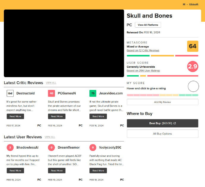 M站开分2.9预定24年开年最低 育碧4A游戏跳票6次新作翻车
