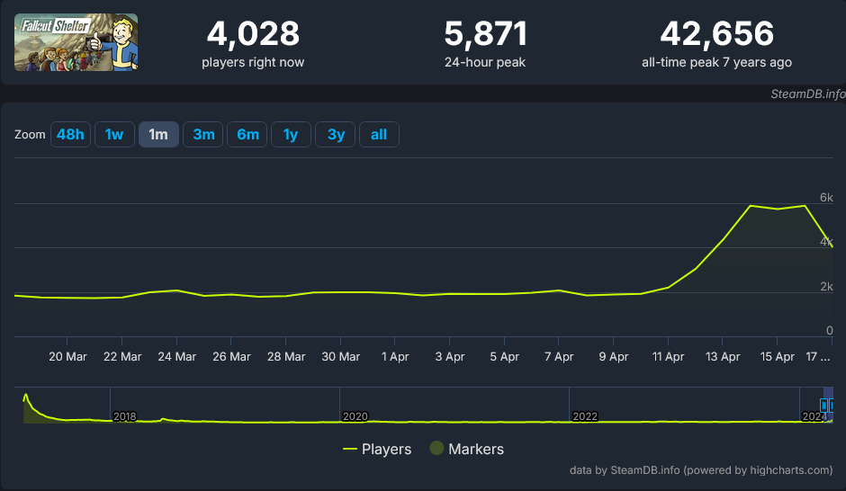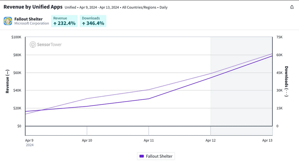 根据手游分析公司 Sensor Tower 的最新数据显示,在亚马逊 Prime 的《辐射》真人剧集播出并广受好评后,移动端游戏《辐射避难所》的每日收入从 4 月 10 日(剧集首播日期)的 2 万美元飙升至 4 月 13 日的 8 万美元。 此外,三天内的游戏下载量也从原本的 2 万左右上升至了 6 万多。电视剧首播的 24 小时内,游戏每日下载量增加了 20%。 据 Gamesindustry.biz 获悉,《辐射避难所》在美国 iOS 顶级免费游戏排行榜中升至了第 7 名,这是这款游戏自 2018 年 6 月以来获得的最高的排名。当时游戏宣布将登陆 PS4 和 Switch,吸引了一波玩家下载尝试。 除了手游以外,昨天还有报道发现系列的其他游戏——《辐射4》、《辐射76》和《辐射:新维加斯》的 Steam 同时在线玩家数量均发生了大幅增长。《辐射避难所》同样登陆了 Steam,玩家人数在真人剧播出后也出现了大幅增长。 |