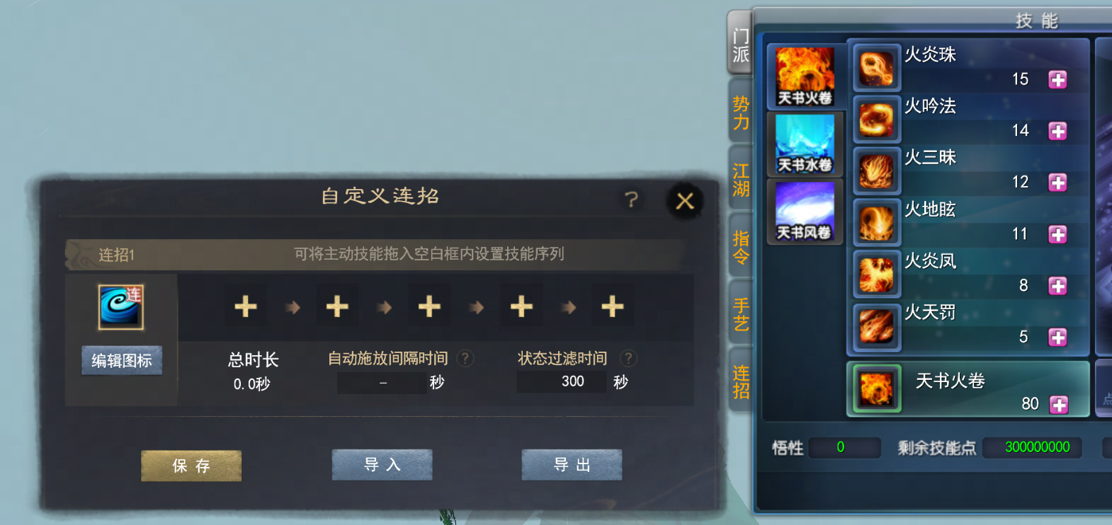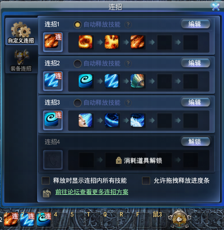 它是每期建言录被屡屡提及的对象,是日常体验中始终困扰着大家的心病,少侠们点评它的时候,时常会发表包括但不限于以下言论: “一天到晚就知道错骨,哪怕给我放个九心海棠都不会打那么慢啊” “我一个法系职业,为什么要走到怪跟前放技能?!” “想手动放个天罚吧,一读条就给我寻路到怪脚下,不停打断!” 听到这里,想必大家已经有了答案,它就是一直被大家诟病的自动战斗。 从21年的建言录说到如今,自动战斗的优化还是没能很好地满足大家的需求。于是,我们痛定思痛,决定这一次,要从根源上解决自动战斗不智能的问题。 那么,如何才能让“看着就不太聪明”的自动战斗变得聪明又听话呢? 我们认为,把这个决定权交到各位少侠手上,应该是最完美的解决方案——以完全自主定义的连招,替代原有千篇一律的“自动战斗”,让每一击都更科学! 自定义连招上线!自动战斗不够聪明?教一次就好~ 在大家普遍的认知中,游戏内现有的连招是装备连招,释放需要依赖装备本身(即穿戴齐某套装备),还要满足触发条件并严格按照特定顺序释放技能方可使用。 所以,当少侠么听说解决方案是自定义连招的时候,都忍不住担忧,自动战斗使用起来是不是更复杂了,门槛更高了? 并非如此!即将新增的自定义连招,不仅使用门槛更低,选择自由度更高,用起来也更方便。 想放啥技能?交给你来定~ 首次上线这项功能,我们为少侠们提供了连招方案用以保存具体设定,第一套方案默认为解锁状态。一个方案中,最多支持放入5个技能。 那么可以放入哪些技能呢?可以说是“包罗万有”。 各种主动技能,门派技能、特技、江湖技能、玄修技能等都能往里放。点击“+”,会弹出技能界面,选择技能拖入连招方案中进行配置。届时,少侠希望在一套连招内打出啥技能,就把对应的技能往里面放,设定好以后,点击保存即可生成连招方案。 预研中界面,请以游戏内效果为准 方案保存后,点击导出,将为当前方案生成一串专属代码。此时,少侠只需点击【一键复制代码】,就能完整复制代码,和其他人分享啦~ 预研中界面,请以游戏内效果为准 如果少侠想要“抄作业”,也可以把其他人分享的代码复制下来,在自定义连招的界面,点击【导入】并粘贴到框内,系统会自动为少侠检查并匹配。注意,只有与当前角色门派匹配的连招才能被成功激活哦! 如果成功激活后,连招中的某个技能未学习,或者对应特技未拥有/未满足使用条件,对应的技能图标也会置灰,显示为不可用的状态。所以少侠们在导入连招后,一定要检查一下,是否与自己的使用需求完全契合哦。 促进自动战斗优化,应用范围更广泛! 这时,又有少侠要问了,这个自定义连招确实是能按我想的顺序出招,那又和我想要的周常自动战斗优化有啥关系呢? 这关系可就大了,因为少侠可以把自己设定的连招,替代原有的战斗逻辑。也就是说,少侠在周常的自动战斗过程中释放的技能以及我们常说的“右键技能”,都可以被替换为连招。 只需在设定好连招后,先在【个人设置-技能】中启用【自动施放技能】,随后在自定义连招的设置界面中,勾选【自动施放技能】就可以生效了! 预研中界面,请以游戏内效果为准 如果你觉得自定义连招只能被用于周常这种情景之下,就太低估它的潜力了。 事实上,自定义连招是针对整个自动施放技能逻辑的“史诗级优化”,它覆盖的范围涵盖了所有自动战斗的情景,无论是大家日常的美食任务、每周必做的周常,还是使用副本自动丹后,在副本场景中的战斗。 连招≠无脑释放技能,过程更智能! 如前文所说的那样,自定义连招的应用范围很广,可以说除了战场环境,基本都能生效。正因如此,自定义连招的施放过程需要更加智能,技能的CD、状态类技能的释放频率等,都需要被考虑在内。 以固本、润脉等这一类有一定持续时间的状态技能为例,系统会检测当前目标身上是否已存在该状态以及其剩余时间,如果少侠身上已有该状态,且剩余时间大于设定好的【状态过滤时间】时,会跳过该技能的释放。也就是说,即便是在连招中增加了状态类技能,该技能也不会在状态未失效前反复施放,做无用功。 不过,需要注意的是,“状态过滤时间”仅针对当前应用的连招方案,而非少侠的全局属性。 预研中界面,请以游戏内效果为准 而像火天罚、火蜥这一类需要选定范围方可施放的技能,将以少侠当前锁定的目标为技能施放位置。如果锁定的目标超出了技能施放的距离,那么连招将会自动中断。 预研中界面,请以游戏内效果为准 为了便于少侠们监测连招是否有正常运作,施放时界面上还将新增小窗,用于显示技能连招的相关信息,包括是否成功施放技能、下一个即将施放的技能是什么等。如处在调息/回气过程中,将显示所需时间。同时,该界面上还将显示完整施放该连招需要的时间。 预研中界面,请以游戏内效果为准 自动战斗的过程中,也难免遇到被怪施加debuff或者打断施法的情况,如果遇到技能被中断的情况,连招小窗也会以闪烁红色光效的形式提示少侠。 多套技能连招,轻松应对各种战斗场景! 不同的战斗场景下,往往要以不同的技能组合来应对,因此,多套连招的存在就变得非常实用。除了默认解锁的第一套连招外,少侠还可以使用道具额外解锁多套并设置不同的连招,以应对不同的场景。 该功能的测试将在近期开启,大家可以在躺着赚钱