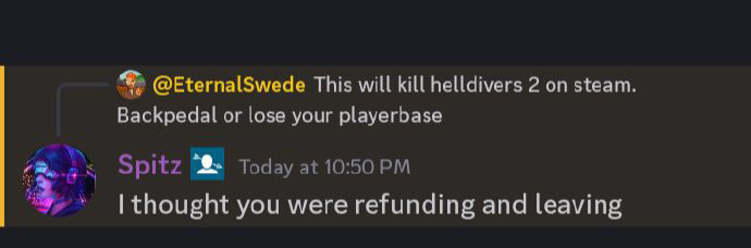 《绝地潜兵2》可能是进入五月份以来,节奏最多的Steam游戏。从最初因索尼强制绑定PSN账号引来差评轰炸;到绑定账号的新规取消,官方准备推出差评纪念斗篷,从始至终这款游戏都处于舆论风暴的中心。 然而回望这一周以来发生的事情,似乎官方和玩家都没有真正损失什么。游戏照常登上了Steam周销榜前十、索尼仅发了一个公告了事、玩家则从中获得了满足感。可事情果真如此吗?答案当然是否定的。开发商Arrowhead的社区经理Spitz,日前就遭到了解雇。 作为社区经理的Spitz,是过去几天《绝地潜兵2》陷入差评风波后,除Arrowhead的CEO外跟玩家们互动最密切的人。不同于Arrowhead官方一直在强调他们与索尼洽谈无果,Spitz给玩家们支了一招:“去给游戏打差评,这能带来优势。” 最终的结果确实如他所说,索尼在30万条Steam差评的轰炸下妥协了。可作为社区经理的Spitz,事后却遭到了针对。今日在官方Discord频道中,Spitz公开了自己已不再担任社区经理一职,同时也终止了与Arrowhead的一切合作关系,临了还强调这一变动并非出于个人意愿。 在最后的个人动态中,Spitz自嘲:“通常情况下,当你是社区经理时,告诉人们退款并留下负面评论并不是一个好主意。今天我学到了。” 不过要说在这起事件中Spitz完全没锅,倒也择得太干净了。实际上最初他的态度是支持索尼的,且觉得玩家们没有必要为了一个花两分钟就可以注册完成的账号(PSN绑定),而大动肝火甚至申请退款。为此他甚至还出言嘲讽退款用户:“我以为你已经走了。” 后续随着事态愈演愈烈,Spitz这才开始鼓励玩家刷差评。奈何作为社区经理,他并没有站在公司的角度考虑问题,不断“左右横跳”同样是种失职。Spitz这种两头不讨好的行为,就是“忠诚不绝对就是绝对不忠诚”的现实映射。 现在的游戏玩家往往代表着互联网最前沿的冲浪儿,官方与玩家的关系很微妙。双方密切的沟通能够为游戏的成功提供助力,可一旦突破了原有的界线,却也可能产生反作用。Arrowhead的开发人员,数月前就曾因为嘲讽玩家引发过一波节奏,直到CEO下场道歉。 或许这次的事情,能够给到更多官方人员以警醒吧。 |