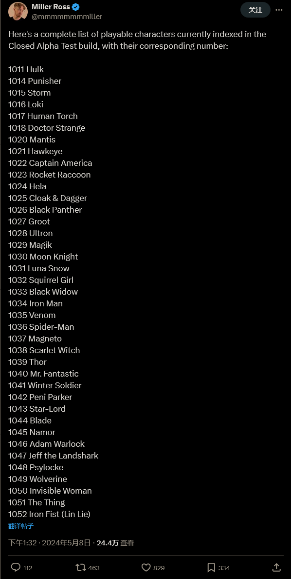 推特用户 @_FireMonkey 日前分享了最近正在进行内侧的《漫威争锋》中许多角色的游戏内技能演示画面。在推文中他解释称,有 4 个角色没有录制,是因为游戏服务器已经关闭的原因。 角色技能演示: 《漫威争锋》是一款由网易和漫威合作的多人团队 PvP 竞技游戏。此前官方曾表示将更将专注于近战。最近还有玩家已经通过内测数据挖掘了所有角色的名称。 据称所有角色都使用了 4 位数字的代号,总共有 39 名,除了 19 名已经公开的角色外,还有 20 名暂未公开的角色。这些未公开的角色包括松鼠女孩、神奇四侠中的怪人以及铁拳侠(中国版本的林烈)等。 除此之外数据挖掘者还分享了 5 个暂未公布的关卡地图名称,分别是九头蛇埃利伯斯基地、瓦坎达星际帝国、克林塔星(毒液等共生体的星球)、永夜帝国、克拉科岛/克拉科压(一个有生命的岛屿)。据称瓦坎达将是下一个被公布的地图。 |