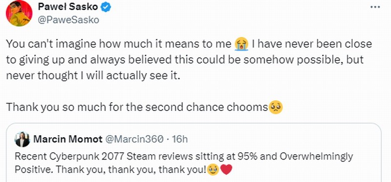 《赛博朋克2077》已卷土重来,势不可挡。除了新的销售里程碑和玩家口碑彻底扭转,这款游戏在Steam上的好评率也在不断上升。 《赛博朋克2077》在Steam上总共获得65万多条评论,好评率83%为“特别好评”。然而在近30天内其评价更好,新增7133条评论,好评率95%为“好评如潮”。这是《赛博朋克2077》首次在Steam上获得压倒性的好评率,对CDPR的开发者来说,是一个巨大的里程碑。 CDPR社区经理马辛·莫莫特(Marcin Momot)发推文称:“《赛博朋克2077》最近的Steam好评率高达95%,获得好评如潮的评价。谢谢你们,谢谢你们,谢谢你们!” 《赛博朋克2077》首席设计师帕维尔·萨斯科(Pavel Sasko)也发文感谢了玩家支持,他表示:“你们无法想象这对我来说有多重要。我从未想过放弃,也一直相信这是可能实现的,但从未想过我真的会看到这一天。非常感谢你们给了我第二次机会。” 这也表明,CDPR已经从《赛博朋克2077》昔日失败中走了出来,现在的每一份支持对CDPR都意义重大。开发团队从失败中吸取了教训,并将利用这些经验教训推出更好的游戏作品。 |