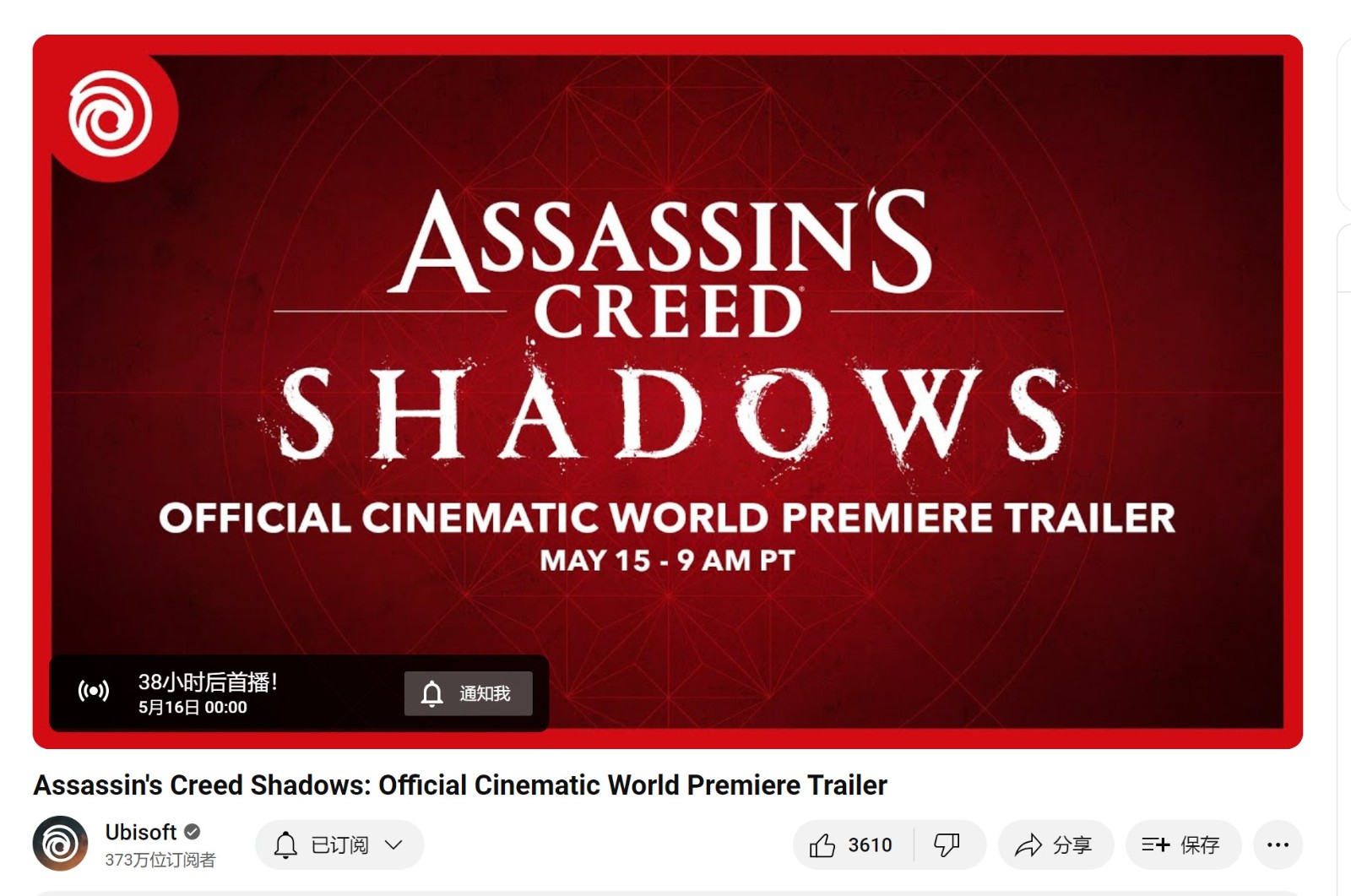 今早,育碧官宣了设定在封建时代日本的《刺客信条》游戏《刺客信条:影》,将于北京时间5月16日凌晨12点全球首发电影式预告片。