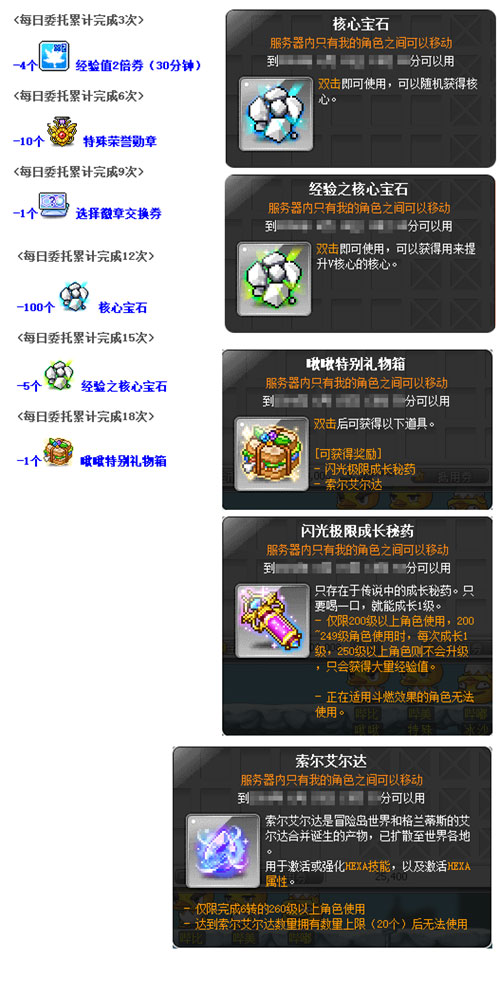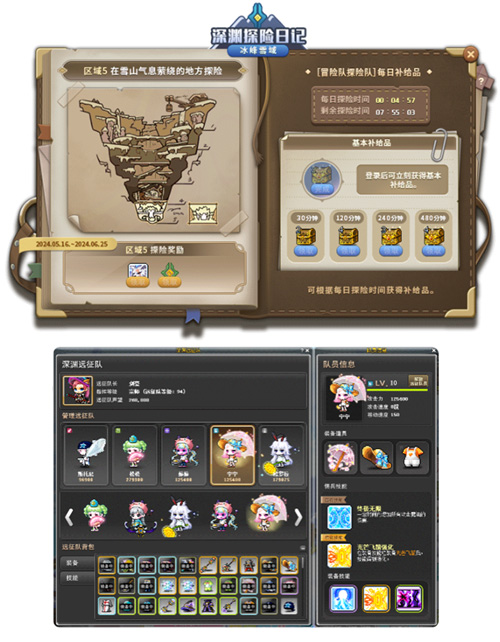 经典端游《冒险岛》中人气副本“深渊远征队”系列第四季今日随版本上线而开放啦!在历经了多次惊险刺激的冒险和探索之后,深渊远征队的成员们都已经成为了身经百炼的勇士了~这次他们将前往冰峰雪域,直面寒风刺骨的挑战,请跟随他们的脚步一起向深渊进发吧! 冰峰雪域山脉中的巨大裂缝?深渊远征队再次出发! 5月16日起至6月25日,玩家可接取[深渊远征队]来自冒险岛探险队的邀请任务 ,冰峰雪域山脉突然出现巨大的裂缝,山脉沉入裂缝之中,从冰峰雪域山脉流向其他地区的河流也随之断流,由于水流断流导致武陵道院陷入旱灾困境!同时深渊内部也出现了众多变形的怪物。接受委托率领深渊远征队到冰峰雪域山脉深处探险,为冒险岛世界的安全,去深渊的尽头找到并消除裂缝出现的根源吧! 玩法介绍: A.获得队员 1. 完成[深渊远征队]探险的基础!招募同伴任务后,将会获得芭比与黎安两名探险队员 2. 通过NPC诺曼支付声望来雇佣队员。 B. 自动狩猎 1. 按队长的指挥等级,决定自动狩猎的时长,自动狩猎时间结束时会回到远征队本部。 2. 各队员会按累积自动狩猎时间来升级,队员最高等级10。 C. 队员装备、技能和关系效果 1. 装备与技能可通过大本营NPC购买来获得;每天结束探险后,在深渊探险日记领取补给品,根据探险时间可以获得不同类型补给箱中获得。 2. 队员可装备武器/帽子/套服,装备时增加属性。 3. 队员技能有固定技能、特化技能、装备技能; 固有技能:远征队员拥有的基本技能,因为是固有能力,不能解除装备 特化技能:在特化技能中装备指定技能时,提升特化技能的被动效果,大幅提高装备技能的性能。 装备技能:远征队员分别达成5级、10级时,技能栏会各增加一格。 D. 消灭怪物 1. 队员会有单独的等级和攻击力, 不使用HP/MP。 2. 获得能力的队长无法消灭深渊的普通怪物和首领怪物,所以由队员消灭。 4. 队员会按自动狩猎时间进行升级,队员杀掉的怪物经验会与队长共享。 E. 远征队等级 1. 按队长指挥等级,增加可同时战斗的队员数量 (最多5人)。 2. 升级条件:消灭该等级区域BOSS后,可自动升级到下一阶段,总共有6级,每天可升级1次。 不同地区开放时间为: 第一区域:2024年5月16日9:00起 新手 第二区域:2024年5月18日9:00起 初级 第三区域:2024年5月22日9:00起 高级 第四区域:2024年5月29日9:00起 资深 第五区域:2024年6月05日9:00起 大师 当通关第五区域后,等级可以达到 宗师 3. 升级福利:增加可使用的队员数量、增加自动战斗时间、扩充可进入地区。 首领战斗: A. 入场方法 在各层4号地图,通过可前往首领栖息地的传送口进入 入场后队员会和首领怪战斗 ,要在规定时间内消灭首领怪,不然视为失败。 B. 战斗模式 首领每隔一段时间会召唤怪物,被操纵的怪物不能由玩家消灭,只有队员可以消灭。 C. 队长技能 1. 散开:所有队员立刻移动到系统指定的位置。 2. 集结:所有队员立刻移动到我的位置,暂时生成保护膜。进入保护膜内的队员受到保护效果,可避开首领怪的范围攻击。 3. 瞄准:所有队员集中攻击指定的怪物。 4. 呐喊:通过响亮的呐喊,鼓舞队员士气,所有队员攻击力+50、移动速度+20、攻击速度增加2阶段。 活动奖励: A. 每日补给品 1. 每天打开深渊探险日记,可以领取到基本探险补给品 2. 根据实际探险时间,还能额外获得额外探险补给品。 B. 探险奖励 消灭各个区域的首领后,将获得探险奖励,完成所有探险任务后,还能获得冰峰雪域探险队长勋章。 C. 远征队商店 1、消耗金币在远征队总部和大本营NPC商店购买队员装备、技能与恢复道具。 酷暑退散!啾啾特调冰沙呈上! 5月22日起至6月11日,玩家可接取[啾啾特调冰沙]酷热退散!特调冰沙任务,帮助小鸡三兄妹制作美味的冰沙,每天消灭1000个等级范围内怪物,就可以制作当日的冰沙! 根据累计制作特调冰沙的次数,还能获得额外奖励! 系统改版,优化改善提前知~ V207版本更新后,首领以及职业相关内容将得到改善:首领“浓姬”改版:简化首领战进入条件;增加任务发放经验值;优化浓姬的攻击模式,调整难度;“阴阳师”职业改版:使用“灵石召唤期间,死亡后使用增益冷藏器复活时如果持续时间仍有剩余,将再次召唤灵石。角色死亡时删除灵石与图标,复活时图标重现并再次召唤灵石;死亡状态下也会消耗持续时间;复活时的自动召唤逻辑参考神那的鬼夜叉技能;右键点击图标可以解除“召唤雪女“技能;可通过五行阴阳师提升最多200魔力。另有剑豪和森林小主的改版内容,请至官网查看哟~ 人气副本“深渊远征队”再次回归,这次探险的地点设置在了天寒地冻的冰峰雪域,正好给逐渐炎热的天气降降温~除了能让玩家沉浸其中的版本活动之外,盛趣游戏萌芽工作室总经理胡婵君及中国冒险岛项目组也为“有情人”们准备了520专属道具~在游戏商城内限时上架夏日甜心礼包以及浪漫告白套装,一定是你在这个情人节的必备单品哦~关注《冒险岛》官方网站http://mxd.sdo.com/web6/home/index.asp 以及冒险岛微信公众号(名称:冒险岛),获取游戏趣味内容哟~ |
