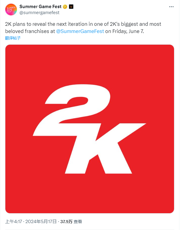 夏日游戏节官方透露 2K将在展会中宣布其最大、最受欢迎系列之一的新作