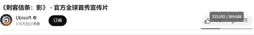 一条预告干爆育碧股价 《刺客信条》新作预告36w人点踩