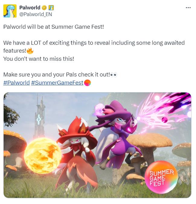 《幻兽帕鲁》宣布将参加2024年夏日游戏节活动,官方表示将有“大量令人兴奋的事情”宣布,其中包括一些玩家期待已久的功能和新亚种帕鲁。