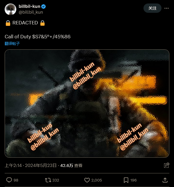 作为最近《使命召唤》泄露潮的一部分,《黑色行动6》的首张封面艺术图也已在网上泄露。当然为了不遭到动视律师函警告,它被模糊化打码。 图片由著名泄密人士 Bilbil-kun(坤哥)提供,之后另一位用户 TheFrenchHench 发布了无水印版本。 两位泄密者均是通过数据挖掘获得大部分信息的,虽然来源不详,但这表明游戏的图像已经上传至某个服务器上,并且即将正式公布。早些时候,2024 年系列新作的首个先导预告小游戏已经在网上发布。 据 Insider Gaming 称,今年的《使命召唤》大概将于 10 月下旬(很可能是 10 月 25 日)发售。游戏将在 6 月 9 日的 Xbox 游戏展示会之后单独的展会上公开更多细节。 最近有大量消息证明,这款备受期待的新作将首发加入 XGP。不过据称微软会因此对 XGP 的收费不同分级进行调整。 |
