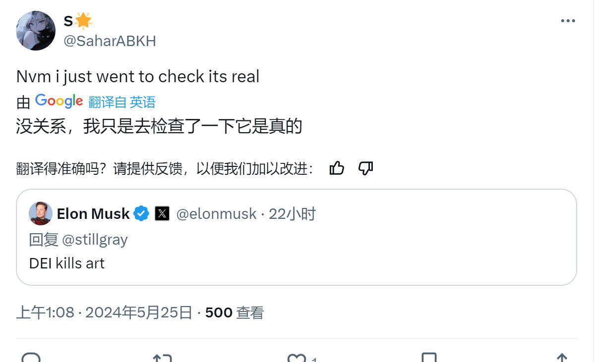 《刺客信条:影》过于政治正确的选角激怒了全球玩家,而社交媒体上有玩家讨论育碧是否应该因为刻意加入DEI(多元化)而延期《刺客信条:影》时,没想到这得到了X拥有人埃隆·马斯克的回复。马斯克表示“DEI(多元化)杀死了艺术。” 马斯克的这一答复立刻被X上致力于打击ZZZQ的推主Grummz看到,Grummz说:“老马是明白人。” 也有网友表示:老马真地爱游戏 也有网友表示,这个账号真的是老马本人: 对于《刺客信条:影》是否应该延期这个问题,有玩家感觉实际上已经太晚了。 “即使延期,育碧也不会对游戏进行有意义的修改。这无论如何都不会成为“电影索尼克”般的翻身之作。在我看来,最好的办法就是让游戏价格合理,并祈祷故事能像模像样。” |