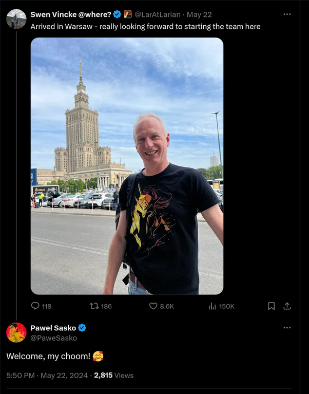本月早些时候,开发了倍受喜爱的角色扮演游戏《博德之门3》以及《神界:原罪》系列的开发商拉瑞安工作室在波兰首都华沙开设了一家新的办公室,以帮助支持开发“ 2 款野心勃勃的”RPG 新作——但这里也是另一家著名 RPG 开发工作室 CD Projekt 的所在地。俗话说“一山不容二虎”,CD Projekt 会不会因为拉瑞安的“中门对狙”而感觉受到威胁呢? 另一个比较热门的工作室聚集地就是加纳的的魁北克蒙特利尔,这里因为政策原因吸引了育碧、EA 和华纳兄弟等等一大堆公司建立工作室,拉瑞安在魁北克也有一个工作室。相比蒙特利尔,华沙的人口实际上更多。CD Projekt 也表态,表示非常欢迎拉瑞安的到来。 在投资者电话会议上,CD Projekt 联席首席运营官 Piotr Karwowski 说道:“当谈到拉瑞安开设新工作室时,自然是越多越好。拉瑞安很棒,Swen(Swen Vincke,工作室总监)也是一个非常棒的人,团队也很棒……我已经通关了《博德之门3》,我非常喜欢它。我个人也是《龙与地下城》的忠实粉丝。”(下图为《往日之影》总监 Pawe? Sasko 欢迎 Swen 来华沙的推文截图) “我们是否感到受威胁?说实话,有人离开跳槽的威胁一直存在,他们在华沙有工作室还是其他地方有工作机会,区别实际上没那么大。世界很小,开发者,尤其是高级开发人员,通常都是流动的,如果有人不想参与一个项目,但他们仍梦想与其他人合作,他们无论如何都会去做(跳槽),所以不论拉瑞安是不是就在隔壁,在我们的角度看来没有太大改变,我们只希望他们一切顺利。” Karwowski 说的很有道理。在欧盟国家因工作缘由在各个地区之间搬家时,对于开发者来说并不是特别困难。在各个厂商之间来回跳槽也是行业里很常见的事情。此前 Swen Vincke 也表示,华沙新工作室已经有着“很多人才”。 另一方面,同行之间的竞争对于玩家和开发者来说都是好消息,只有足够的福利和待遇才能留下更好的人才,而玩家也会因此收获更棒的游戏。 |