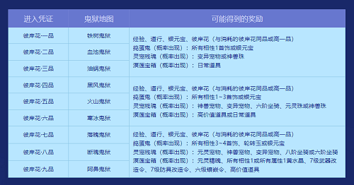 现值《问道》幽冥鬼狱劫难四起之际,前往幽冥鬼狱超度鬼怪、消灭魔族、解救灵宠残魂可以获得丰厚的数值、道具和宠物奖励!普通版限时进行中,道友快来参与幽冥鬼狱副本活动吧! 活动时间截至6月9日23:59,玩家≥60级即可参与副本活动,每个副本限制最多5人,每日最多可获得10次数值奖励。活动期间,在游戏界面内右上角通过点击“幽冥鬼狱”打开活动面板,点击“前往挑战”将自动寻路至茅山道士处,选择奖励类型,提交带有品级的彼岸花(可同时提交多个),确定后开启副本(如当前线路无法创建副本,玩家可尝试切换其他线路创建副本)。开启副本次数与提交彼岸花数量一致,不同品质彼岸花可同时提交。品阶越高的彼岸花可以前往更深层的幽冥鬼狱,奖励也更加丰厚。进入活动副本后,开启30分钟倒计时,玩家需尽快将此处暴走的鬼魂和隐匿的魔族清理干净,建议使用自动进行功能,可缩短寻怪时间。 当提交彼岸花一品至三品,有概率获得变异宠物、神兽珠等奖励。提交彼岸花为四品至六品,有概率获得神兽、变异、六阶坐骑、神兽珠、所有相性1-3首饰等奖励。提交彼岸花为七品至九品,有概率获得元灵、神兽、变异、八阶坐骑或六阶坐骑、所有属性1黄水晶、7级武器/防具改造令等珍贵奖励!版本对应的详细奖励可见下图。 玩家每日在获得100、200和300活跃值后,且达到指定战力,可以在幽冥鬼狱活动界面领取彼岸花·一品。右键点击彼岸花,可消耗金元宝进行炼化,获得特殊的属性效果。炼化一次增加一条彼岸花的特性,最多可持有8条,当拥有8条特性时,再进行炼化不再增加条数,且随机重置一条特性,每朵彼岸花仅可炼化30次。每日可获得10次数值奖励,达到上限后可继续参与活动,但不会获得数值奖励。 活动正在进行中,道友快来参与限时副本活动,丰厚奖励等你来拿! |