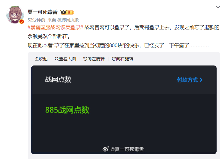 自暴雪和网易于今年4月份官宣破镜重圆的消息后,国服玩家就都处于亢奋状态中。但同时因为诸多数据需要恢复,暴雪游戏国服回归的具体日期还得延后。在中间历经了两个月的准备后,日前也终于有了突破性新的进展。 ——今日魔兽国服战网已经正式上线,玩家可以通过账号密码登录。 重启后的战网依旧是原来的味道,一如暴雪此前保证的那样,玩家的数据得到了保留。本次回归的战网,UI页面和操作旧版一致,且交易记录仍在。虽然还无法正式登录游戏体验,但依然缓解了大伙的“相思之情”。 夏一可就分享了做后期的同事,重新登录账号后还发现了当初没有退款的账号里剩余的战网点数。对于普通玩家来说,这或许也算是暴雪、网易“复婚”后,所提供的好处吧。至少在旧有数据的交接与恢复上,玩家们无需太过担心。 而忘记密码的玩家也不用慌,在该界面可以重新找回,有需要的还能更改绑定的手机号。 除了战网的重启,此番暴雪带来了另一个重磅消息,那就是《魔兽世界》回归信息的官宣。对此,暴雪暂时还卖了个关子,具体的情况将在6月6日(明天)正式公布。作为暴雪旗下最受重视的游戏,如果《魔兽世界》能定下来,诸多问题就迎刃而解了。 而不久前,官方还曾透露:“在6月3日到5日期间,我们将对官网进行维护并进一步接入战网功能。随后,将开展基于【巫妖王之怒】的技术测试,这将是【巫妖王之怒】开服前的重要一步。”如今战网已经重启,怀旧服的回归自然也不远了。 暴雪游戏重返国服就在眼前,希望这一次官方能帮助大家重新找回曾经的感觉吧。 |
