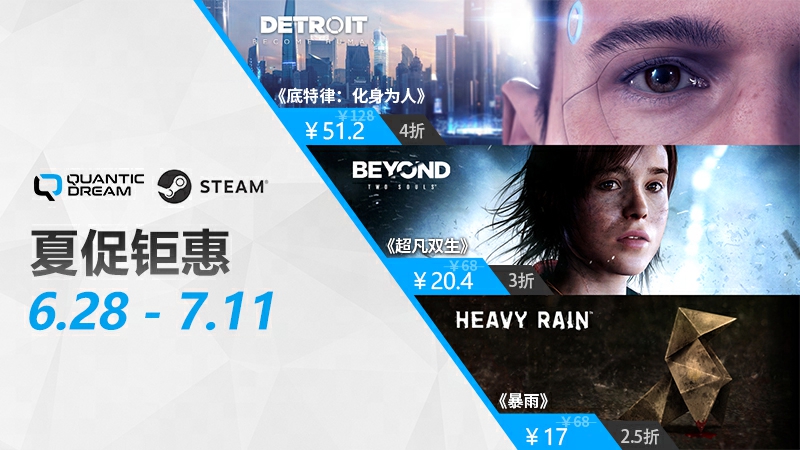 夏日促销来袭!随着夏日温度的攀升,Quantic Dream带来了几款精选游戏。从6月28日开始至7月11日结束,这是您以优惠价获取这些优质游戏的绝佳机会。 首先,探索《底特律:化身为人》,一款以未来世界为背景的冒险游戏。在这个世界中,人工智能已发展到与人类难以区分的程度,您将面临一系列道德和选择上的挑战。现在,您可以享受60%的优惠,体验决策的重量以及它们如何塑造游戏世界的结局。 紧接着是《超凡双生》,这款游戏以70%的折扣率提供,讲述了两兄弟间由超自然力量连接的非凡故事。随着剧情的深入,您将体验到充满情感的叙述和心理上的挑战,每个决定都会带来不同的故事走向。探索这段超自然连结。 对于喜欢紧张刺激体验的玩家,《暴雨》提供了一个绝佳的选择。这款以75%折扣销售的互动剧情游戏将您置于一连串连环杀手案件的调查中。通过选择和行动,您将直接影响故事的发展和结局,每个细节都可能是解开真相的关键。体验这场悬疑探案。 探险者们可以在《碧波之下》中沉浸在神秘的深海探险中,或在《时之刃》中穿越时空进行史诗般的历险,这两款游戏现均以50%的折扣提供。无论是探索深海未知的宝藏还是体验时空旅行的奇迹,这些游戏都能为您的夏日带来更多精彩。 这个夏天,不要错过这些精彩的游戏体验,它们将带您进入各种不同的世界,体验在不同世界遨游。立即访问相应的Steam页面,开始您的游戏之旅 | |