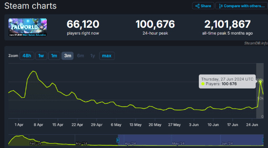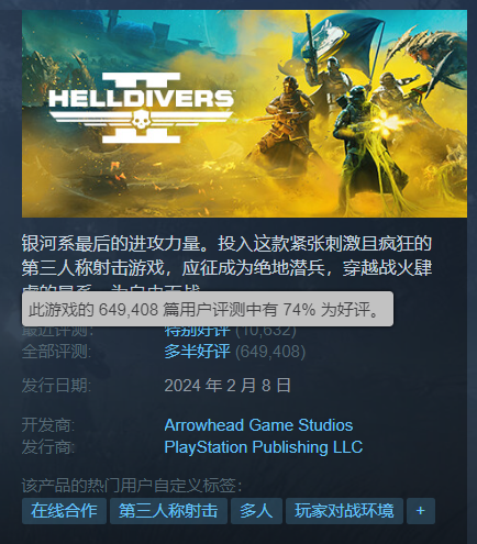 2024年Steam平台涌现出了许多优质的中低成本游戏。它们属于那种事先预算并不高,没有太多人知晓,但上线后又迅速爆火,乃至于风靡全球的品类。《幻兽帕鲁》、《绝地潜兵2》就是其中最大的两匹黑马,可随着时间的推移,却也难以避免玩家的流失。 在发布五个月后这两款游戏的Steam在线玩家流失都高达90%,《幻兽帕鲁》受限于偏单机化的流程和内核,目前的情况还能接受。可对于《绝地潜兵2》这款多人在线游戏,原本大伙都认为它能够在较长一段时间维持热度。 作为一款拥有1200万销量、Steam在线玩家峰值达到45.8万人的多人在线游戏,《绝地潜兵2》目前的活跃玩家只有3.3万人。造成这种结果的原因有二,其一是索尼强制绑定PSN的骚操作,其二是缓慢的更新速度。 5月初,《绝地潜兵2》玩家被强制绑定PSN账户。在3天内得到了超过30万条差评,30天的好评率跌至13%。这场声势浩大的玩家差评轰炸潮持续了一周多,最终以索尼取消推行该新规结束。事后很多人,将这起事件称之为玩家的胜利。 索尼认怂后,《绝地潜兵2》的口碑渐渐回升,但总体评价达到74%多半好评就停滞不前了。期间,还有很多玩家放弃了为“超级地球”而战,再也没有回来了。 而在绑定PSN账号风波后不久,《绝地潜兵2》的开发商Arrowhead又放缓了游戏更新节奏。他们认为游戏的更新频率过快,不利于游戏质量的提升。或许开发团队的想法是好的,但后续的事件的发展却超出了既定的轨道。 缓慢的更新节奏,又一次降低了玩家们的游戏热情。这款多人在线游戏在发布五个月后,失去了首发时的盛况,玩家流失高达90%。 相反,另一款发售时间更早的Steam黑马游戏《幻兽帕鲁》,凭借上周的樱岛更新重新找回了热度。除了新的地图、新的帕鲁,新增的陨石坠落事件、多人竞技场、高难模式塔主、帕鲁装扮,建筑系统也进行了大幅改进。 新版本的发布,让《幻兽帕鲁》的玩家人数重新突破10万大关。虽然较之巅峰时期的210万人仍有较大差距,可受限于游戏本身的玩法特性,这已经很不错了。 在保证长期运营方面,《绝地潜兵2》其实有着更大的优势。可发生影响玩家印象的事件、更新节奏的减缓,却对维持游戏的热度产生了反作用。值得一提的是,此前Arrowhead曾准备上线一款差评斗篷纪念PSN账号绑定事件,可至今仍未实装。 伴随着游戏热度的不断下滑,或许《绝地潜兵2》该好好考虑一下提升更新节奏的事情了。 |