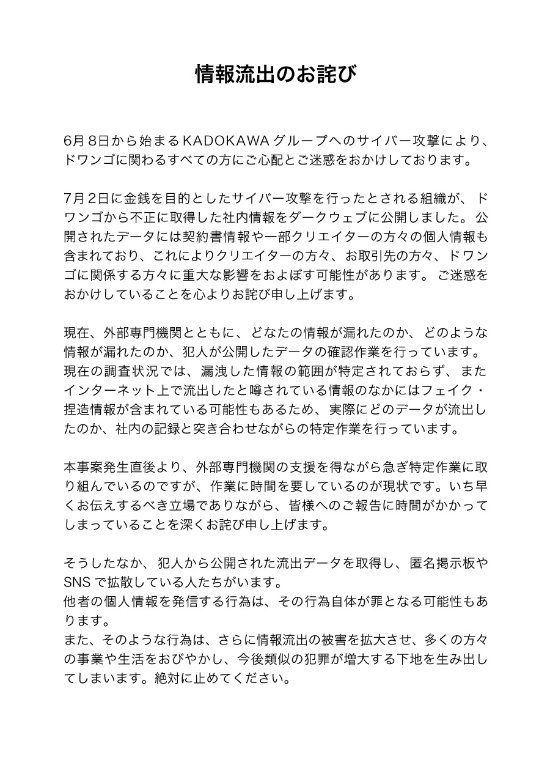 《艾尔登法环》凭借新DLC“黄金树幽影”的发布,成为了Steam夏促活动中最靓的仔。玩家热度和讨论度重回两年前的巅峰期,销售数据也极为喜人。对于开发商FS社来说,这无疑是个好消息。可连日以来,FS社的母公司角川集团,却因另一件事而焦头烂额。 上周四,角川集团遭到了黑客的网络攻击。跟以往的游戏大厂一样,黑客们在窃取数据资料后,便对他们发出了勒索信。黑客表示这批数据多达1.5TB,如果不缴纳赎金,他们将在网上公开。而时隔数日,没有妥协的角川集团遭到了报复,大量消息随即被公开。 此前,索尼旗下的失眠组信息泄露后,正在开发中的游戏《漫威金刚狼》被公之于众。但这一次角川集团的信息泄露事件涉及的却不是游戏,而是关于个人隐私。 角川集团从基层到社长,个人信息统统被泄露。不仅如此,跟角川合作过的明星、主播、画师、声优、VTuber的个人资料也悉数偷跑。乃至于双方每次合作开出的工资和价码,都完全透明化公开。如果你关注日本的声优或者主播,相信能从中看到不少老熟人。 角川集团遭到黑客“开盒”,这件事乍一听颇具喜感,可实际上绝不是这么回事。个人的隐私被放在互联网上,很难保证不被其他人利用。 有网友就拿着角川集团社长的驾照,去注册一些奇奇怪怪的网站账号。更有“皮套人”主播,被扒出了真实身份以及住址。而那些曾经与角川集团合作过的主播,都可能因为信息泄露,受到“私生饭”的侵扰。这起事件所造成的影响,比大家看上去要严重得多。 当前,角川集团在网上发布了声明。对受到此次事件影响的人道歉之余,也表明了自身彻查到底的决心。 据悉,因为加强了用户的信用卡信息并未在内部存储,所以数据不存在从公司泄露的风险。同时,他们还警告用户不要访问攻击者所提供的网站或下载数据文件,以避免恶意软件感染。最后,呼吁公众不要通过社交媒体分享相关数据,以免个人信息泄露并造成严重影响。 较之以往的黑客攻击,更多是对正在开发中的作品的影响。(卡普空的《生化危机8》就曾在开发阶段出现内容偷跑)本次的事件,切实对工作人员的现实生活造成了隐患。其所造成的损失,也是无法量化的。 现阶段角川集团已向警方上报了这件事,而后续也希望事态能尽快平息吧。 |