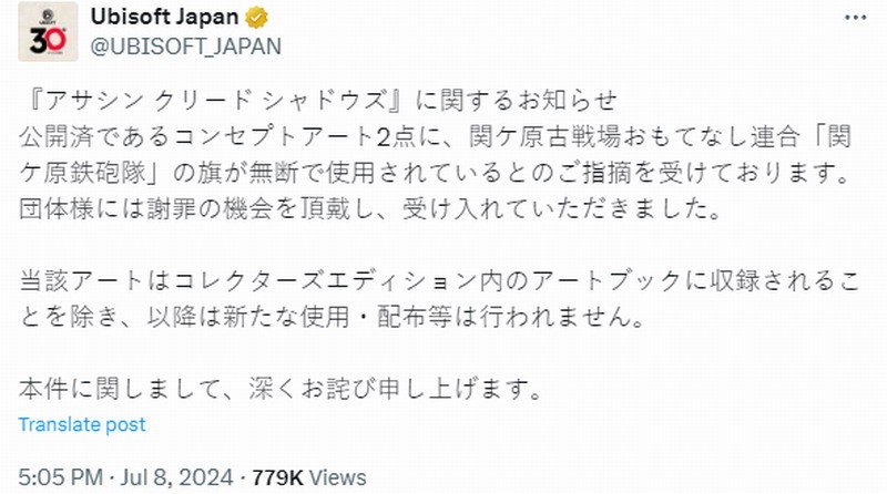 《刺客信条:影》非法使用图源 育碧致歉并承诺不再用