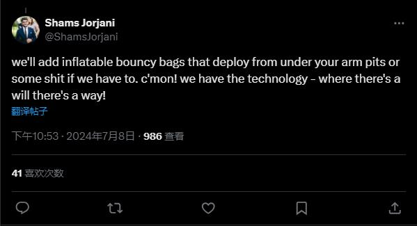 虽然《绝地潜兵2》在爆红之后遭遇了玩家大量流失的问题,不过依旧有着一部分忠实玩家,继续为超级地球而战。 近日有玩家发现,如果因为意外导致角色飞到半空摔落下来,那就使用表情动作,可以减少摔落伤害。名为“Chunke-Funke-Monke”的reddit用户,最先在网上分享了他的发现。 《绝地潜兵2》表情降低坠落伤害视频: 虽然目前尚不清楚表情动作减伤的机制,但从视频中可以看出该技巧只能减伤,并不能完全避免坠落伤害,因此不是十分影响游戏平衡的漏洞。所以有玩家请求开发商Arrowhead保留这个“机制”,因为这是“少数几个太有趣而不能删除的错误/故障之一”。 而Arrowhead现任CEO Shams Jorjani完全理解玩家的诉求,在其推特上询问是否可以保留这个“机制”。不过CEO很快又给出了新的建议:“如果有必要,我们会添加可从你的腋下展开的安全气囊或类似的东西。来吧!我们有技术——有志者事竟成!” |