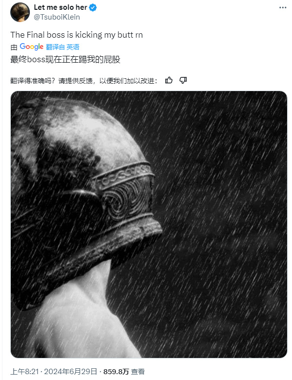 《艾尔登法环》的玩家社区有着许多隐藏大佬,但要说在玩家群体中热度最高,乃至能得到万代官方认可的玩家,却只有壶头哥一个。 壶头哥游戏中的ID叫“Let me Solo her”,头顶壶型头罩、手拿尸山血海、身上仅穿一条裤衩的形象极具辨识度。在《艾尔登法环》的本体游戏中,他以帮助其他玩家战胜女武神而闻名。网络上梗图齐飞,在各种漫展中甚至都已经成为了能跟女武神一同出现的形象。 随着“黄金树幽影”DLC的更新,壶头哥顶着新ID“Let me Solo him”进入了幽影之地。早在上个月中旬开始,他就已经接受玩家们的召唤,提供“滴滴代打”梅瑟莫的服务。由于“黄金树幽影”的难度太高,直到6月30日他才在X上发布了自己通关游戏的动态。 不得不说,“黄金树幽影”给予Boss的超高数值为这位知名的社区玩家,还是带来了一些阻碍的。但能当游戏大佬的人,从来不缺乏天赋。经过不断的练习,当前壶头哥对DLC的最终Boss拉塔恩的各项打法也已了如指掌。 梅瑟莫已经无法满足他的需求了,那些被拉塔恩的超高攻击频率和大范围AOE技能折磨得不成人形的玩家,如今可以通过召唤他来帮助自己。近期在外网,就出现了壶头哥帮助其他玩家战胜拉塔恩的视频。而这一次,他的装扮跟此前大有不同。 顶着“Let me Solo him”的新ID,壶头哥的操作依然丝滑而精准。但他没有再赤身裸体,而是穿上了蒙格特的衣服,武器改成蚁刺细剑,仅保留了壶头罩。或许会有人质疑他穿上衣服打Boss的含金量,但你要知道壶头哥是以超高的熟练度完成的全程无伤挑战。 临了,在壶头哥战胜拉塔恩后,召唤他的玩家还原地磕了个头。谁也不知道在这之前,这名玩家被拉塔恩折磨多久了。 当然,壶头哥本人也是从被血虐一步步走过来的。面对拉塔恩屡战屡败的过程中,他曾发布了一条在雨中的黑白图片,来描述自己的心境。也正是因为有了这一次又一次的失败,最终战胜强敌时的喜悦感才能更加强烈。 凭借帮助一位又一位玩家战胜强敌,壶头哥在玩家社区受到了拥戴。2022年在壶头哥帮助1000名玩家击败女武神后,万代官方专门为其送出了纪念周边。其中包括女武神的木刻画像、证书以及一把刻有“崛起吧,褪色者”的剑。 此前在评论《艾尔登法环》的本体和DLC的Boss强度时,壶头哥依然认为女武神是难度最高的Boss。他的原话是:“DLC中的BOSS都是对真正技术的考验,玩家需要学会耐心和反击的时机。但就DLC BOSS的纯粹难度而言,我一般会将它们评定在女武神之下。” 对于《艾尔登法环》来说,壶头哥已经成为了一个传奇,即便未来为官方做到游戏里成为NPC,想必也没人会感到意外。此前,壶头哥在击败女武神7000次后选择了“封刀”。可以预见的是,拉塔恩未来还会遇到这个带着壶头的Boss很多次...... |