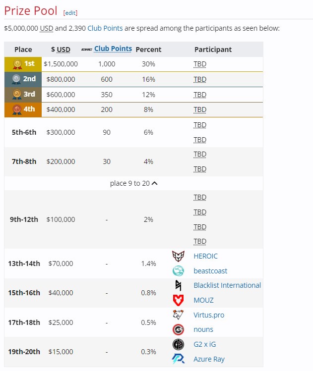 电竞世界杯《DOTA2》项目(利雅得大师赛),主赛事小组赛已经全部结束,两支中国战队XG和LGD挺进淘汰赛,但前者进入了胜者组,而后者有惊无险地进入到败者组。 利雅得大师赛小组赛全部结束,4支战队淘汰,剩余12支战队将进行淘汰赛的较量。 胜者组晋级战队: Falcons Spirit GG OG Tundra Entity Liquid XG.WBG 败者组晋级战队: Aurora LGD Quest BB 淘汰战队: HEROIC Blacklist bc MOUZ 利雅得大师赛淘汰赛将在7月16日17:00开始,首场比赛XG.WBG对阵Falcons,败者组LGD的比赛将于7月18日00:00开始。 利雅得大师赛奖金池和俱乐部点数分配情况:冠军拿150万美元和1000积分 |