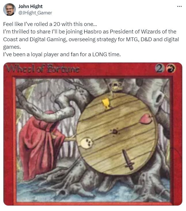 前《魔兽》总经理John Hight任威世智新总裁 负责《龙与地下城》和《万智牌》