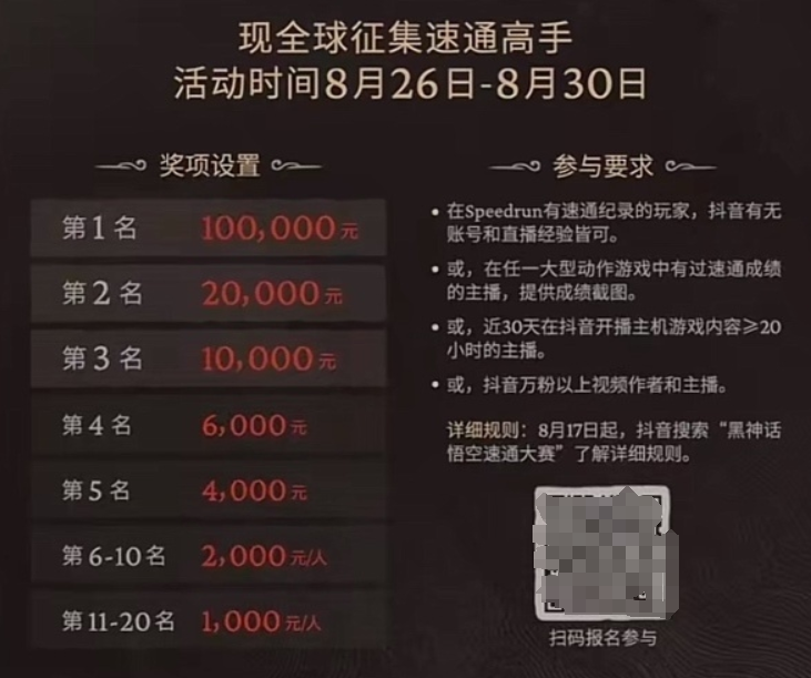 《黑神话悟空》速通挑战开出10w奖金 门槛太高挡住普通玩家