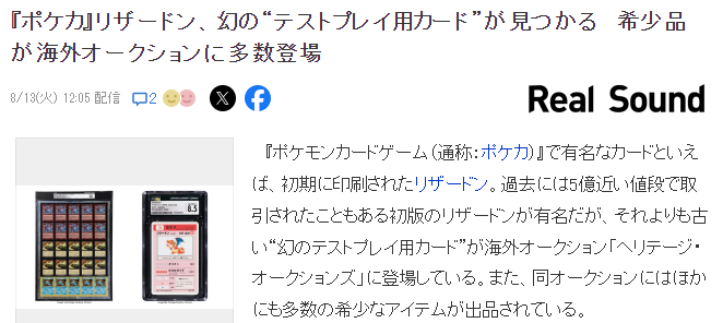 超珍稀测试用宝可梦卡牌惊现拍卖站 或将刷新记录