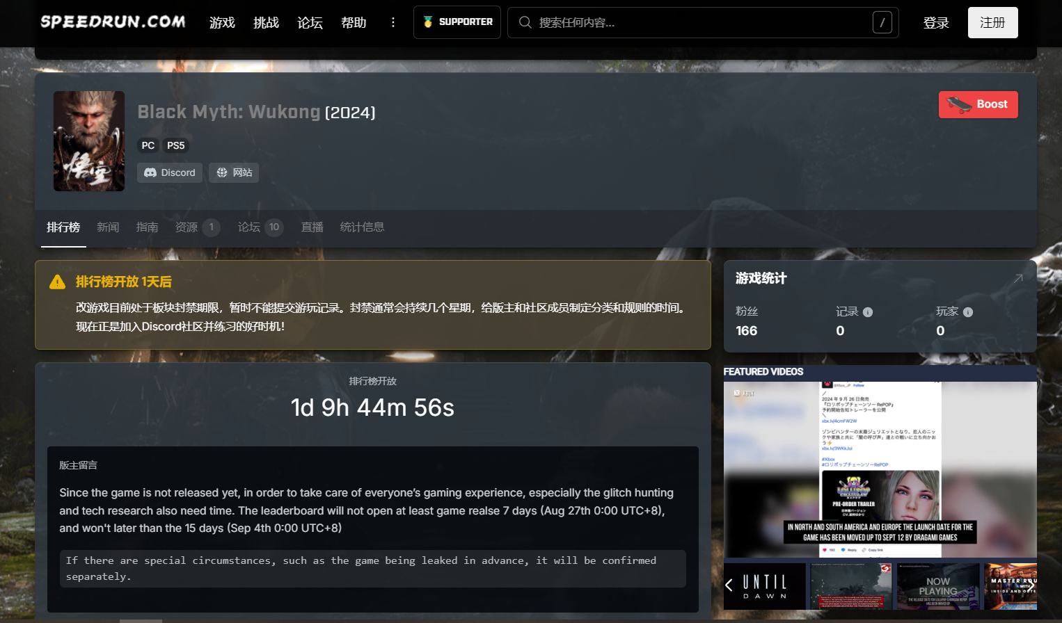 《黑神话:悟空》首发距今已经过去了一周多,但根据Steam的成就系统显示,通关这款游戏的人只有1.6%。作为一款推完全流程需要50-80小时的大体量作品,大部分玩家现在仍在继续着游戏流程的探索。 不过上述数据只是对普通玩家而言的,那些真正的大佬早早就已经开启了速通挑战。接连几天,不断有玩家创造了新的速通纪录。截止到本文发布前,最快完成《黑神话:悟空》速通挑战的大佬,是一位中国玩家“隔壁老王-QAQ”。 ——仅仅用了1小时28秒他就取回了大圣的六根创造了世界纪录。 首先需要声明的一点,就是这场挑战为any%速通。即——在不开修改器、不借助外部力量的情况下,运用游戏中的一切存在的机制,核心目的只是为了击败最后的大圣残躯完成通关。 整场速通挑战最开始,“隔壁老王-QAQ”就借助土地法术变为的金蝉,穿过了一系列复杂地形。广智、幽魂统统跳过,直接就对上了黑风大王。击败黑风大王,天命人将解锁聚形散气这一关键法术。从某种角度来说,这个法术也是构成1小时速通游戏的最关键的东西。 早在游戏上线之初,《黑神话:悟空》就已经被扒出过许多游戏BUG。其中,无CD使用技能的BUG广为流传,海内外玩家皆知。具体的操作方式,就是在释放立棍切手技“风云转”时再按下聚形散气,之后所有技能就会进入无CD状态。 即便蓝条已空,天命人依旧可以不断使用聚形散气。期间既可以用来赶路,对上Boss时也能无限连招。也是在解锁这个技能以后,天命人才真正成为了无所不能的大圣。一个筋斗,翻十万八千里。(第二章黄风阵的旋风,就是清楚的地标) 其实到了这一步,对战BOSS时就没有什么难度了。全技能无CD的情况下,任何敌人都不是齐天大圣的对手。后续在22分46秒他击败了黄风大圣、36分27秒击败了黄眉、36分27秒击败了百眼魔君、49分59秒击败了红孩儿、1小时28秒击败了大圣残躯成功通关。 关于《黑神话:悟空》的any%速通,难点主要还是在路径规划上。没有地图,你得能找到通往最终Boss关最近的路。而这个过程也是在不断优化中的,“隔壁老王-QAQ”一共发了三条速通视频,前两次的时长分别为1小时04分和1小时11分。 ——未来不排除能杀进1小时以内。 《黑神话:悟空》昨日更新了补丁,优化了多项游戏内容和修复了BUG。但卡技能无限CD的BUG还在,只是操作要求更苛刻了。国外主播GameBreakerGod就在通关游戏后,开始频繁使用这个BUG,包括他在内的许多国外玩家甚至认为,这是属于大圣的“神通”。 当然,any%速通只是《黑神话:悟空》诸多速通挑战的一部分。后续也会有无邪道、全收集等速通挑战的开启。目前,知名速通网站speedrun上,关于这款游戏的速通规则还在制定中。相信在不久之后,大家就能看到来自全球的速通挑战者开启的全新演出。 不知道大家通关游戏又用了多久?如果还未通关,现在又推进到哪一章了呢? |