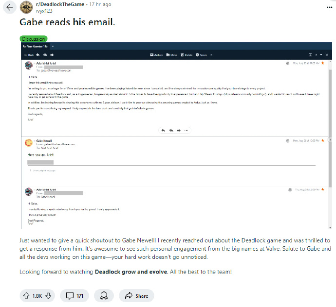 酸了 网友跟G胖要《Deadlock》内测资格 得到本人回应