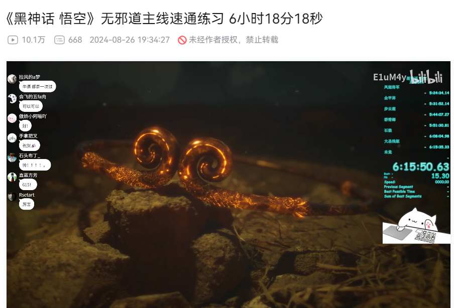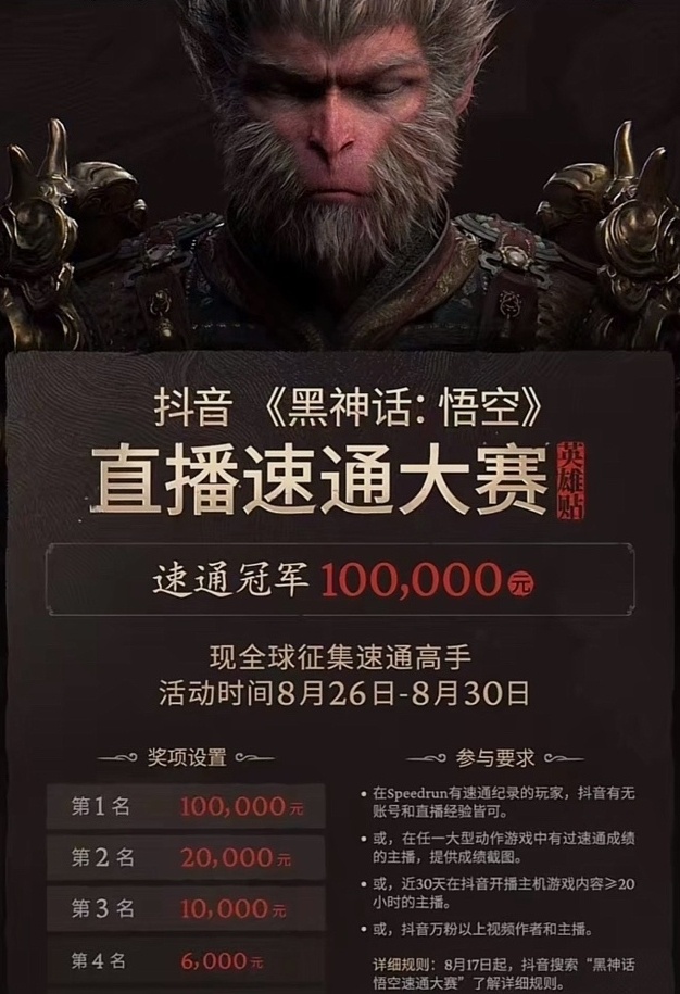 早在《黑神话:悟空》还未正式发布前,抖音平台便预告了对这款游戏的速通挑战活动。这项挑战不仅代表着荣誉,第一名还将获得10万元的奖励。起初速通活动的开放时间为8月20日,但为了让玩家们更深入探索和享受游戏,活动开始时间延后了一周。 ——而在经过平台审核裁定后,最终玩家“E1uM4y”仅用时4小时30分钟便通关了游戏,成为了“全网速通第一人”。 “E1uM4y”来自于云南昆明,是一位26岁的普通玩家。在开启速通挑战之前,他已经将《黑神话:悟空》通关了五六遍,期间对各种打法套路进行了优化。这场速通挑战,全程都是以抖音直播的方式进行的,但为了集中精力全程他基本没有说过话。 挑战成功后,“E1uM4y”也将自己的速通秘诀分享给了大家——学会拆解招式多多练习。 相较于速通网站speedrun对速通挑战者有着严格的规则限制,抖音官方发起的这场活动在各个方面的要求都相对宽松些。譬如说豪华版“百戏套装”在拜访第一个土地庙时,他就穿在身上了。 此外,速通挑战也没有要求全Boss收集。因此像寅虎、小黄龙、毒敌大王乃至于浮屠塔的二郎神这类棘手的隐藏Boss,都不在本次速通的挑战的行列中。整个流程只推主线,最后击败大圣残躯即可。(这都是规则允许的) 老实说,4个半小时通关整个游戏,本身已经是非常了不起的成就了。某些时候,光一个Boss就能挡住普通玩家这么长时间。而“E1uM4y”虽然夺得了本届速通大赛的冠军,但他认为还有优化空间,未来打进3小时应该没有问题。 因为整个过程都在直播,多少有些分心,期间“E1uM4y”出现了一些失误。譬如在速通挑战进行到1小时22分时,他就被亢金星君的落雷击杀,不得不再打一次。未来如果要挑战speedrun上的速通纪录,相信速度将会大幅提升。 值得一提的是,“E1uM4y”早在8月26日就上传过《黑神话:悟空》的速通练习视频,当时他用了6小时18分18秒完成了挑战。如果能再优化一下路线及打法,打进3小时还真不是梦。 目前,被全球玩家认可的speedrun网站,正在制定关于《黑神话:悟空》的无邪道速通规则。而Any%无限制分类速通挑战(可以使用游戏内BUG),现在已经开放。排在榜首的中国玩家“LonEliteNV”,仅用时57分33秒通关游戏。 相信随着经验的积累,后续《黑神话:悟空》的速通挑战将会更加精彩。 |