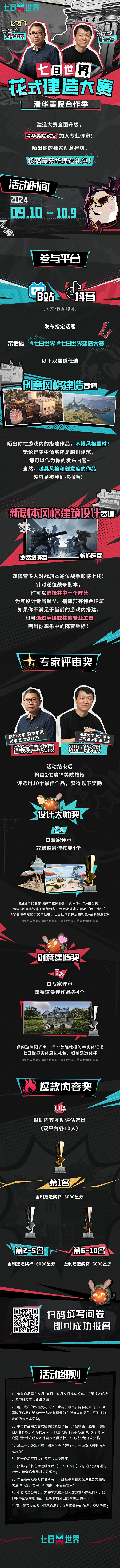 备受期待的《七日世界》花式建造大赛第二期即将上线,此次赛事将再次聚焦建筑创意的无限可能性,旨在激励社区创作者们的想象力和创新精神。 第一期赛事虽然仍有众多设计元素尚未推出,但参赛者们还是凭借丰富的创意和精湛的技术,展现了令人叹为观止的建筑作品,如今已经完美落幕,游戏官方便马不停蹄地公开了第二期赛事的到来,势必将带来更多惊喜。 此次赛事特别邀请清华大学美术学院的两位杰出教授作为专业评审:环境艺术设计系的崔笑声教授和工业设计系的系主任张雷教授。他们的加入,意味着参赛者将会获得更专业的反馈与指导,助力他们在建筑创作上更上一层楼。 “建筑学是一个伴随着人类发展成长的学科,每一次想象力的突破,都是一次伟大的创新,”崔笑声教授在接受采访时表示。他期望能看见参赛者们在结构、空间和形式上展现出创新与美感。 与第一期相比,第二期赛道将进行全新升级,评审团的专业性和评选的公正性均将得到提高,奖品也将更加丰厚,以回馈参赛者们的热情与才华。 期待在此大赛上涌现出更多超越既有框架的建筑作品,展现玩家们在虚拟世界中对现实建筑美学的独到理解和创新。无论是游戏爱好者还是建筑设计新秀,都将在这个平台上找到属于自己的展示机会,见证在清华美院专业评审的指引下,超越者们用他们的创意和汗水,打造什么样的精彩作品!参赛信息及提交细则已于近期公布,作品带话题#七日世界 #七日世界建造大赛即可参与,敬请关注《七日世界》官方网站和官方社交媒体平台,获取更多最新动态! |